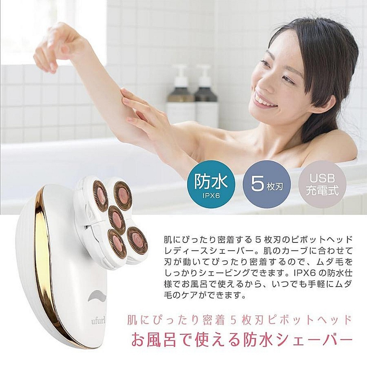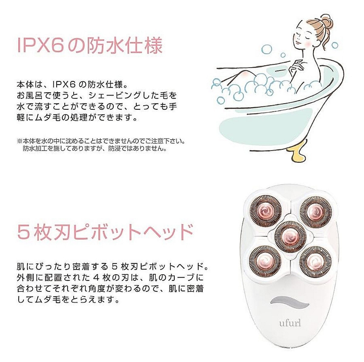 肌にぴったり密着5枚刃ピボットヘッド お風呂で使える防水シェーバー IPX6の防水仕様