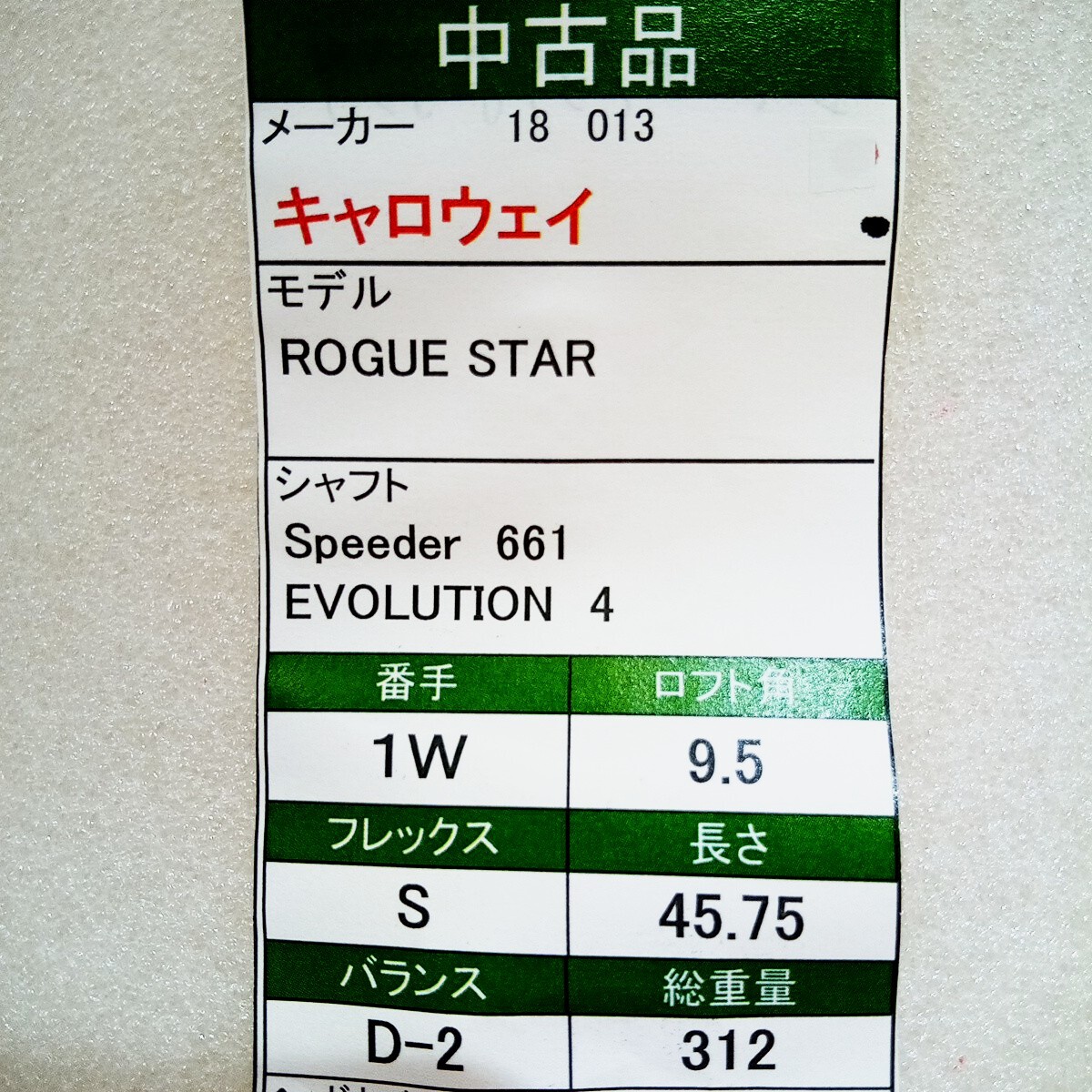 【即決価格】【1W】キャロウェイ/ローグスター/9.5度/SPD661エボ4/FLEX S/カバー無し