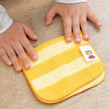 2つに折ればポケットに入る!ひとりでもしっかり拭けるミニタオル
