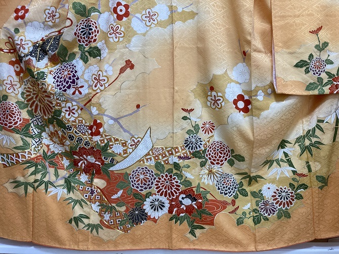 鮮やかな古典柄の着物です