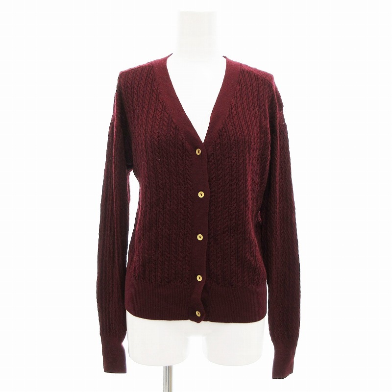 ナノユニバース nano universe 毛玉レスニット ツイストリブ前後2way カーディガン 長袖 36 赤茶 ボルドー /VU□ 0407 レディース
