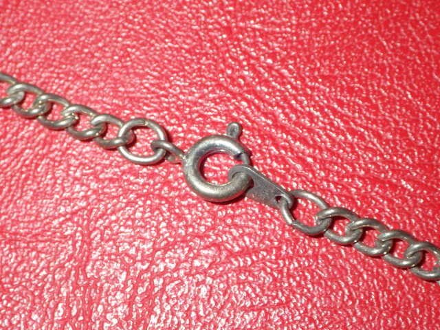 素材はメタル(合金)、サイズはトップ部分のサイズが6.9cm×6.2cmと大ぶり、付属のビンテージ・チェーンの長さが51cmくらいです♪