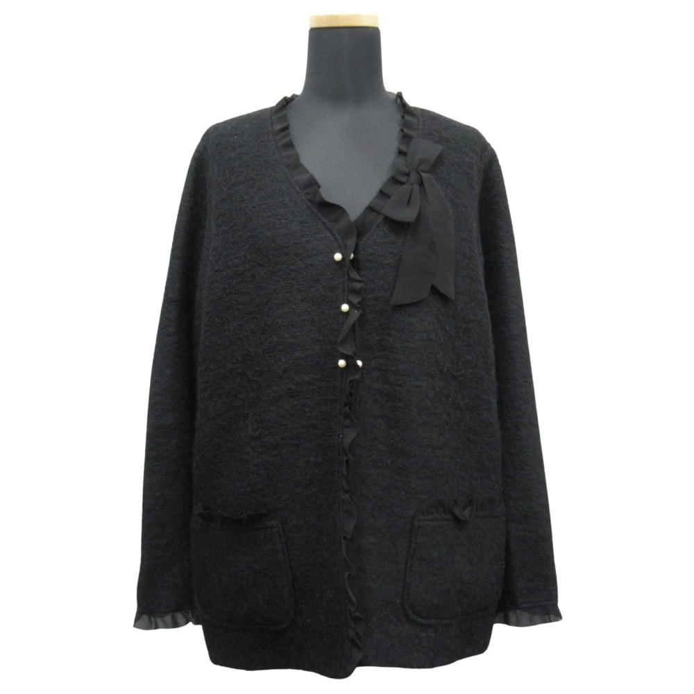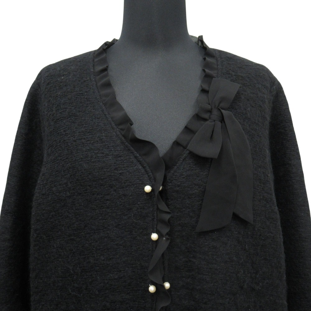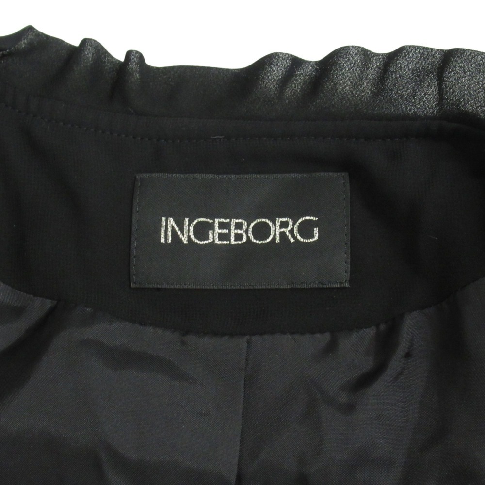商品名:INGEBORG インゲボルグ モヘヤ モヘア リボン フリル ノーカラー ジャケット ブルゾン サイズ9 黒 ブラック