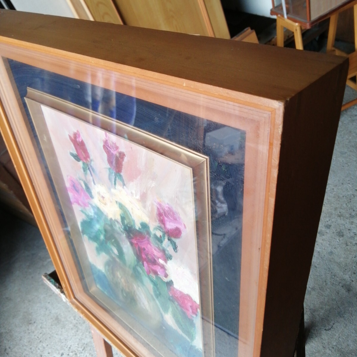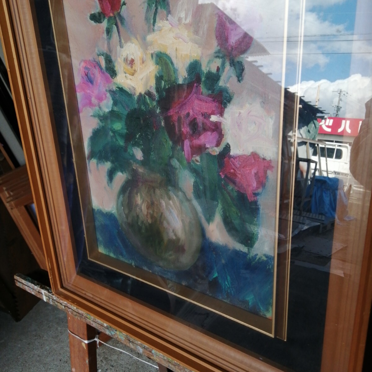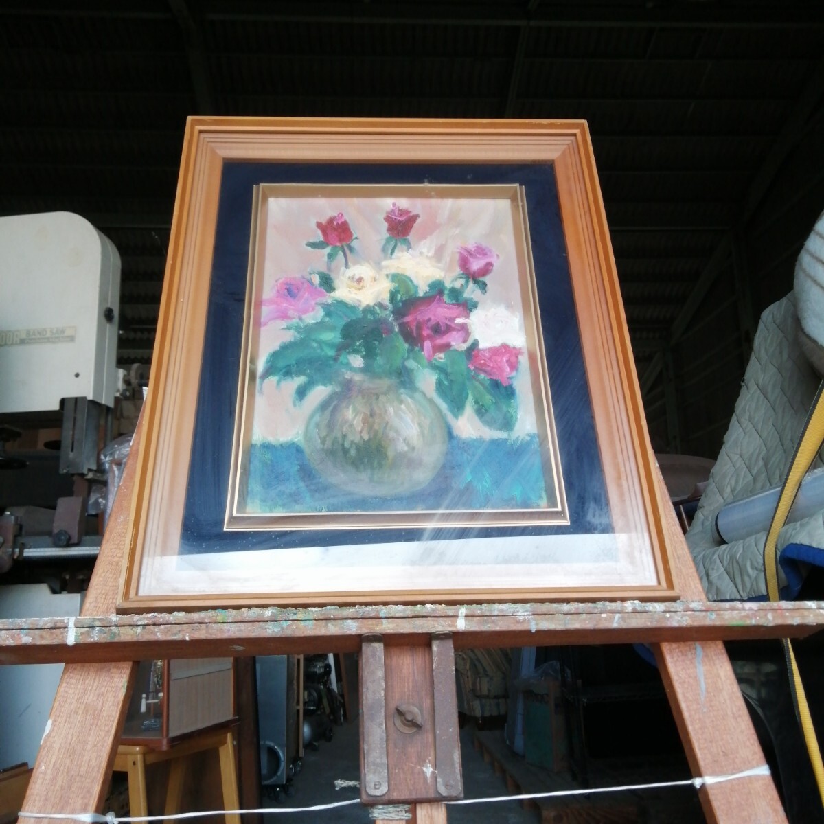 花柄 バラ 薔薇 油絵 油彩 額装 アート 絵画 インテリア