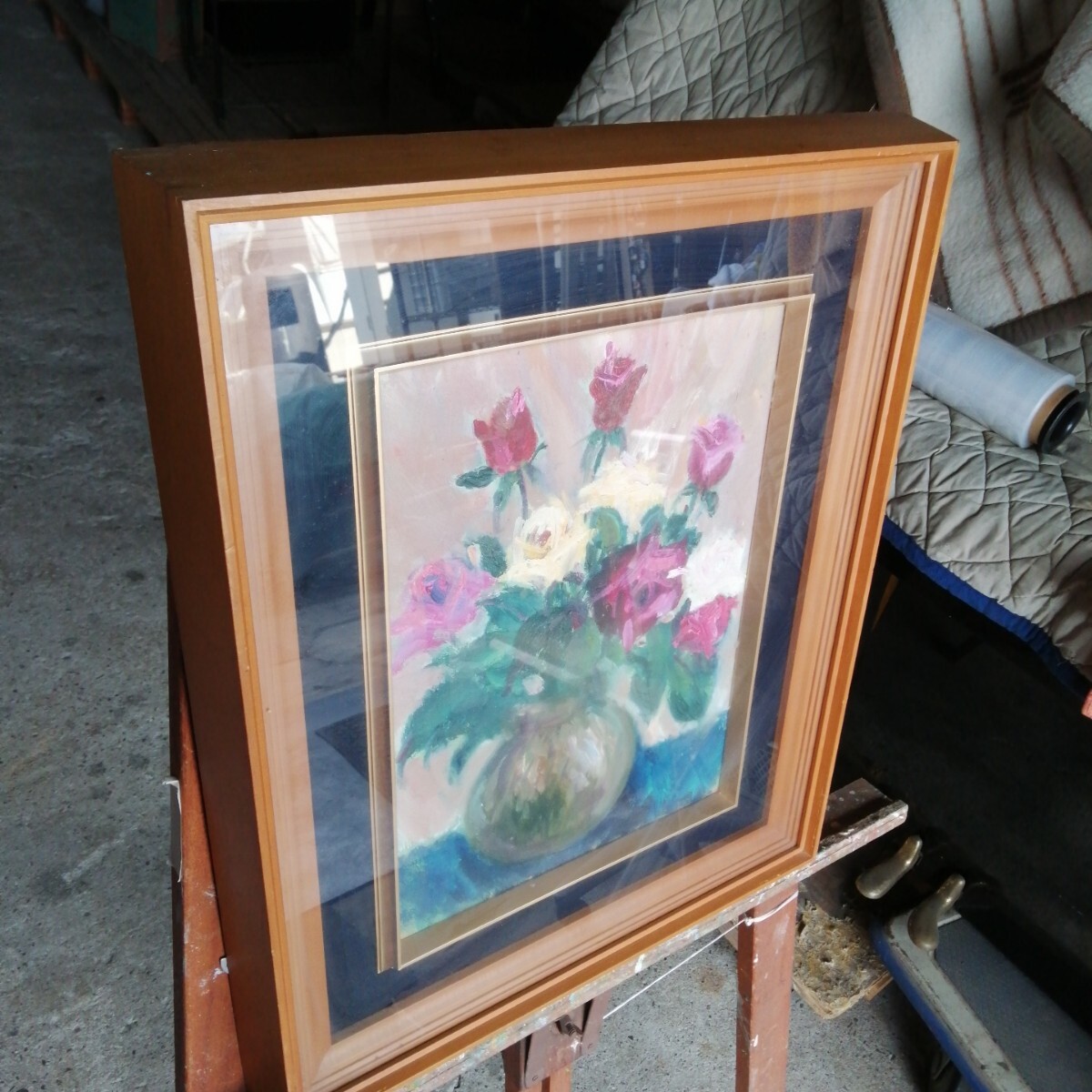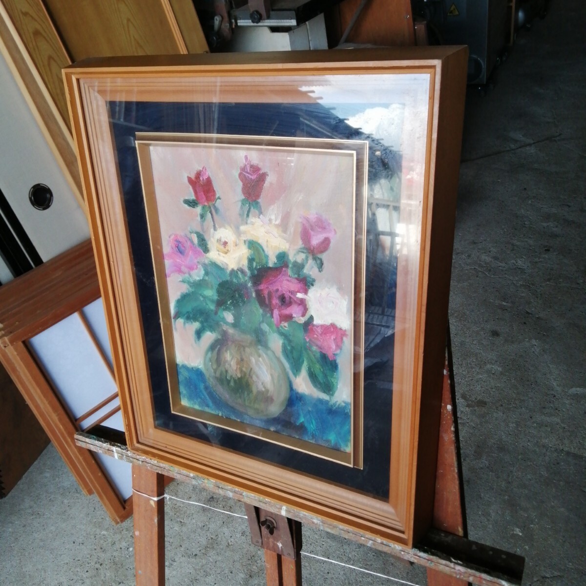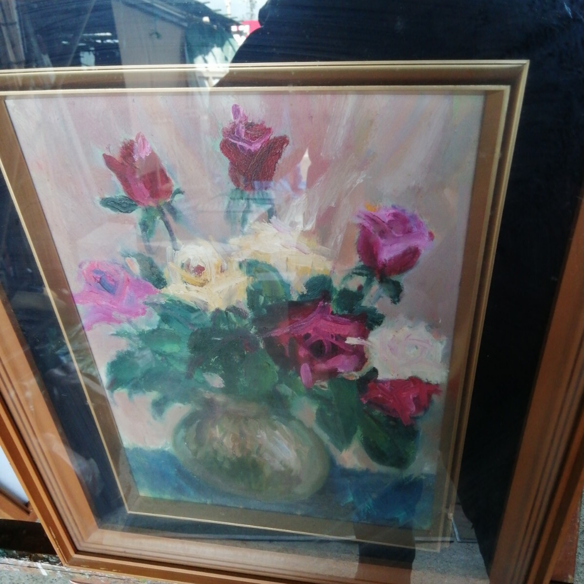 花柄 バラ 薔薇 油絵 油彩 額装 アート 絵画 インテリア