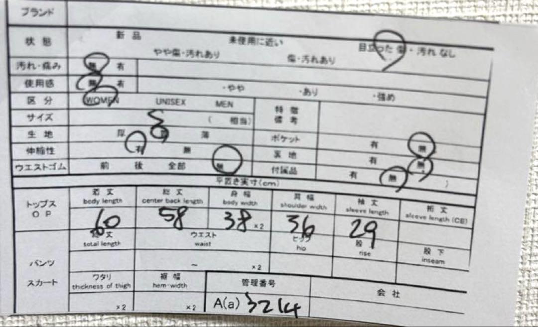 ※アパレルのブランドによりサイズ基準が異なるので、必ず採寸表をご確認の上、ご購入お願いいたします