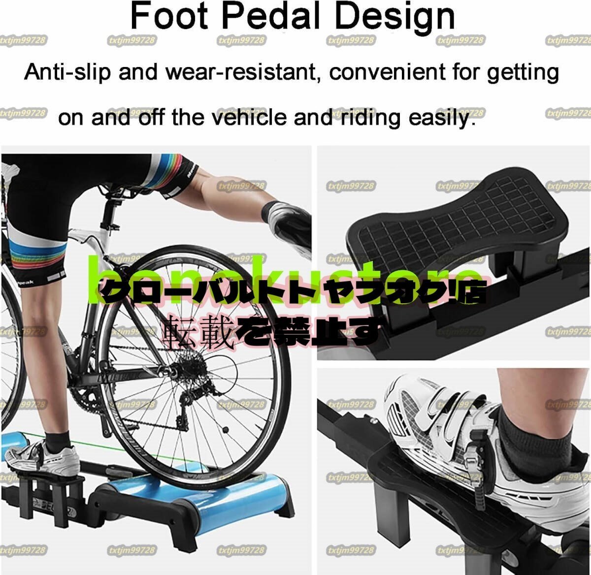 バイクトレーナースタンド、ペダルデザイン付き折りたたみ自転車ローラー、調節可能な前輪ブラケット、滑り止めと耐摩耗性、24-29インチの