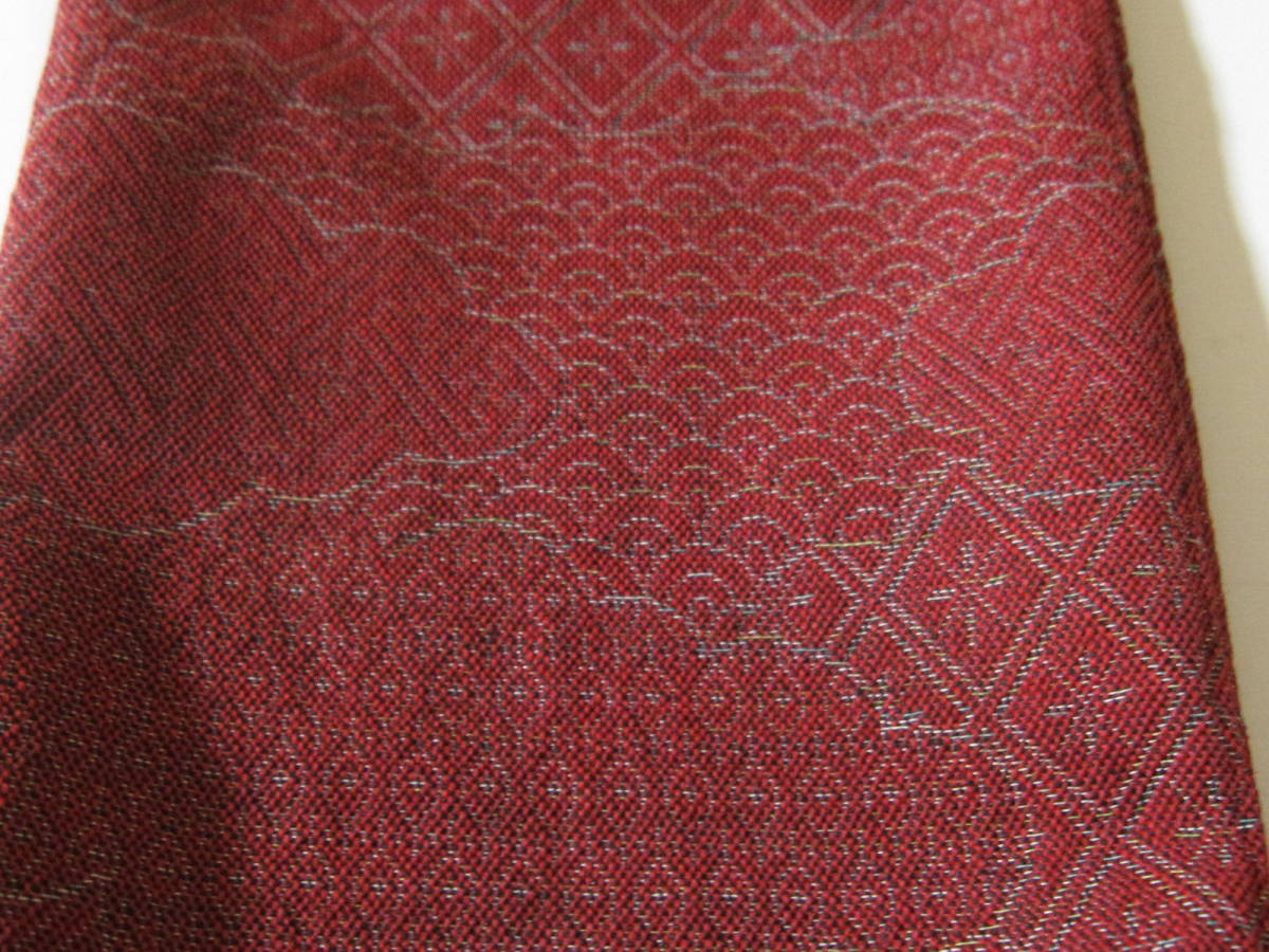 柄は、エンジ×グレーで、色々な小紋柄  ◎青海波・紗綾形・ドット系・業平格子などかと。