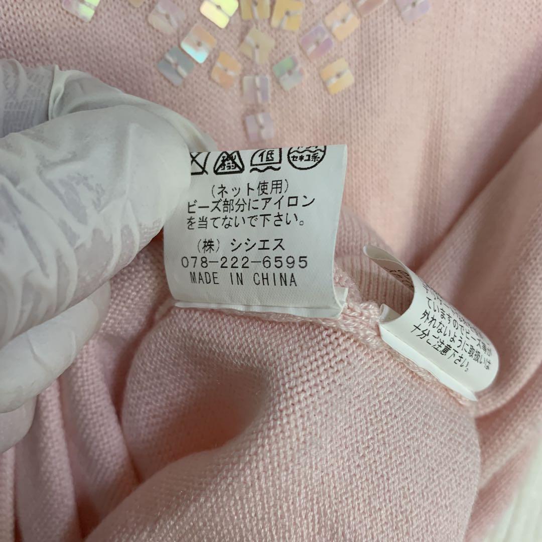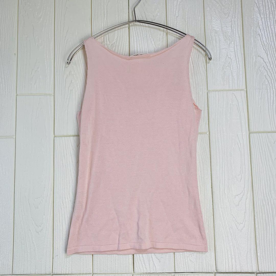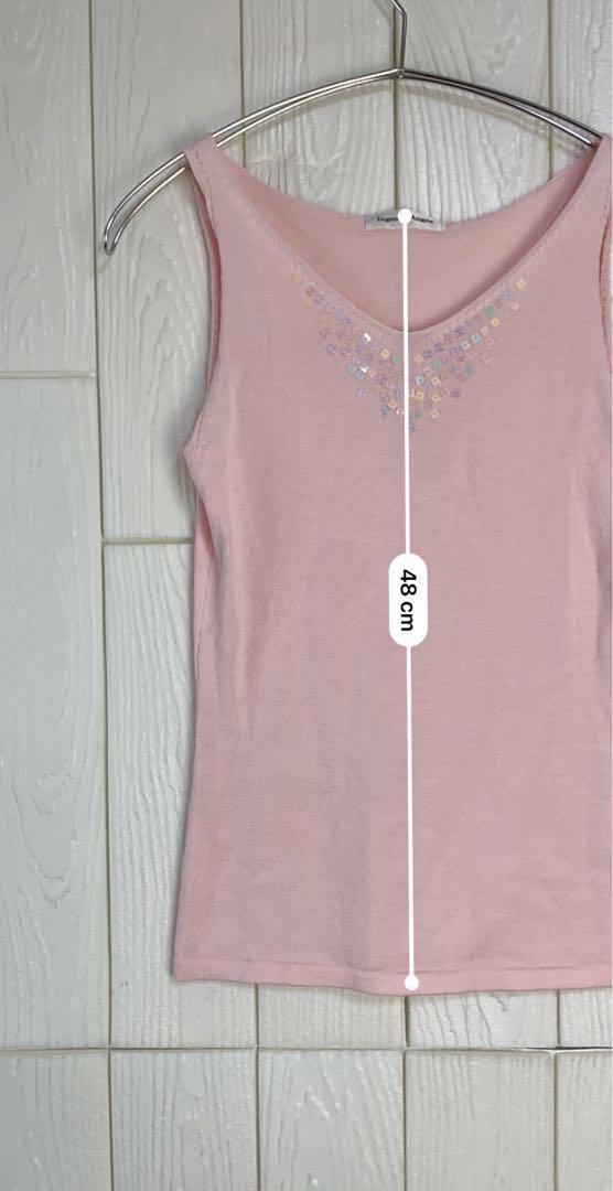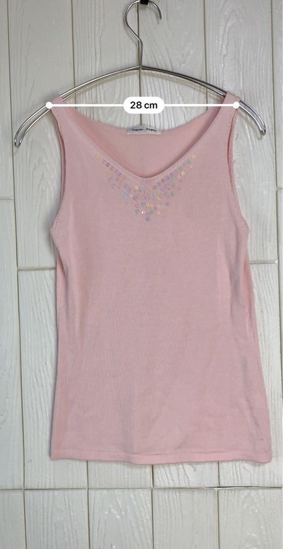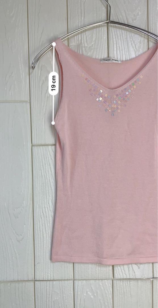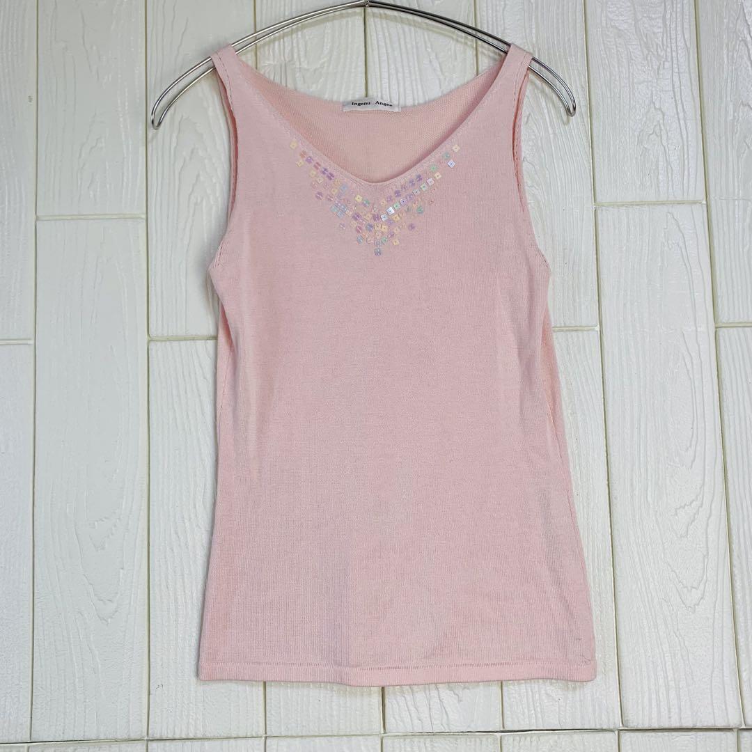 ビーズ装飾が施されたピンクのタンクトップ。
