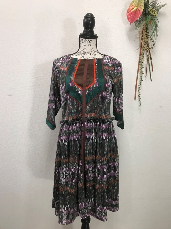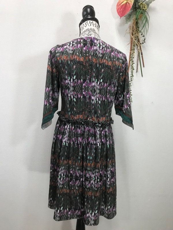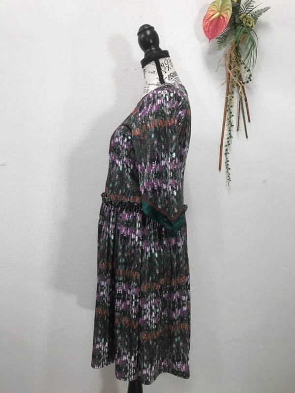 3695 レディース 【 YUMA KOSHINO ヒロこ コシノインターナショナル 】 半袖ワンピース サイズ:L 色:パープル柄