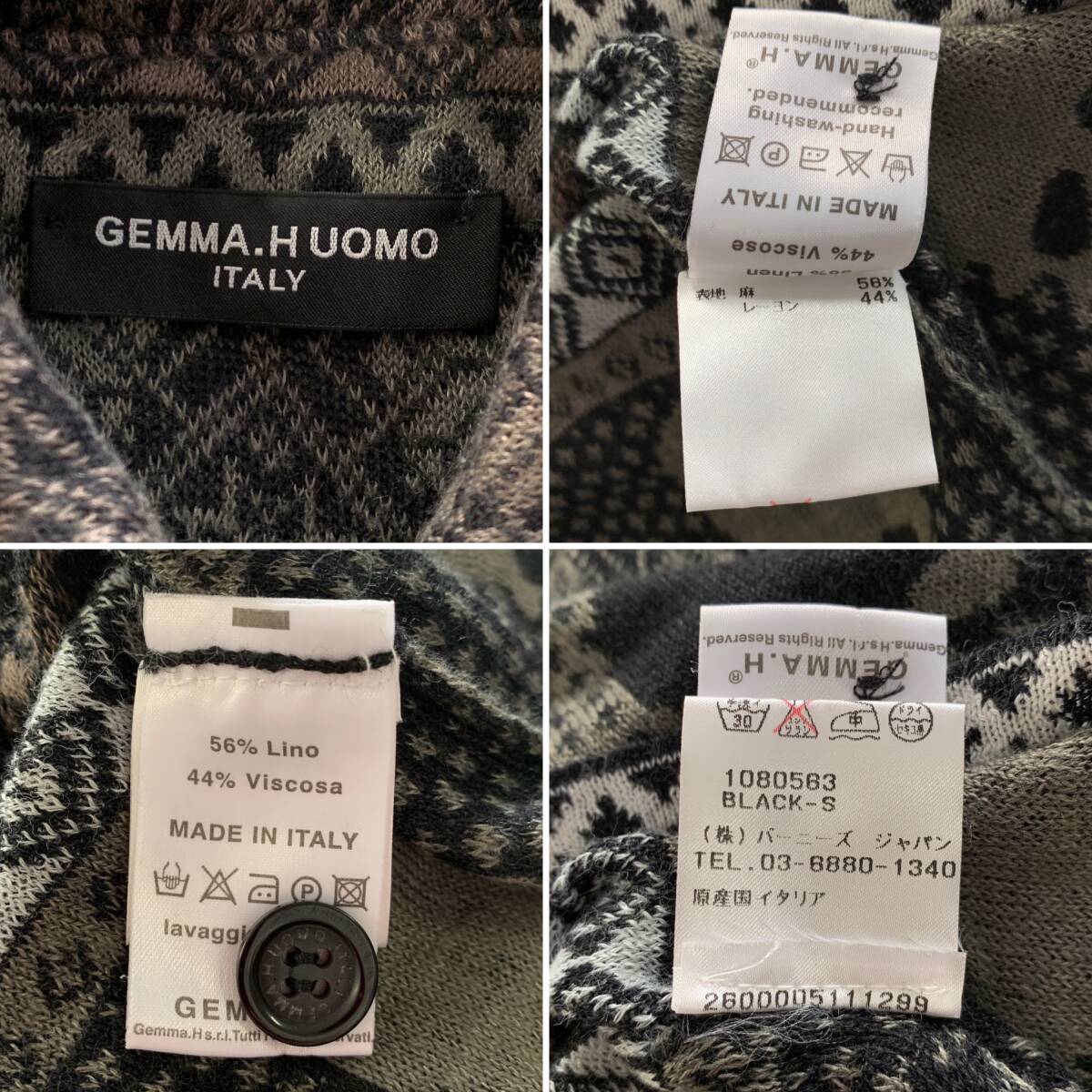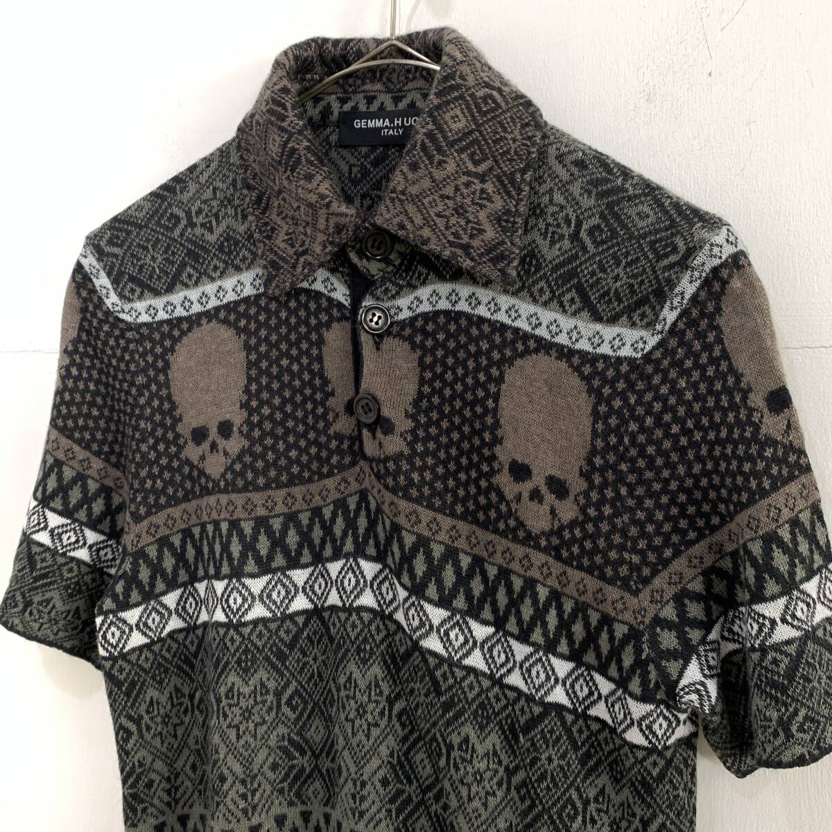☆GEMMA.H UOMO イタリア製 総柄 ドクロ スカル 半袖リネン混ポロシャツ 麻混 グレー×ブラウン サイズS【レターパックプラス郵送可】Iの出品です。