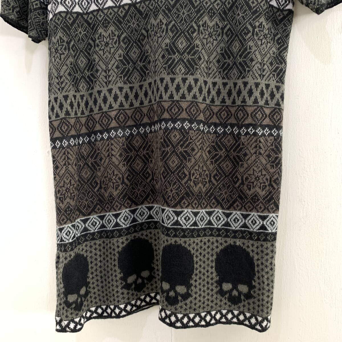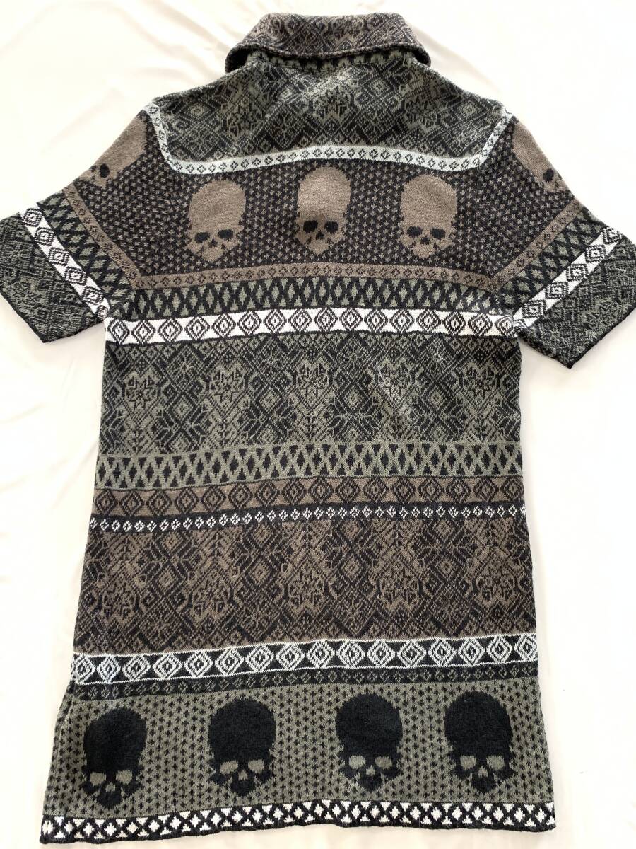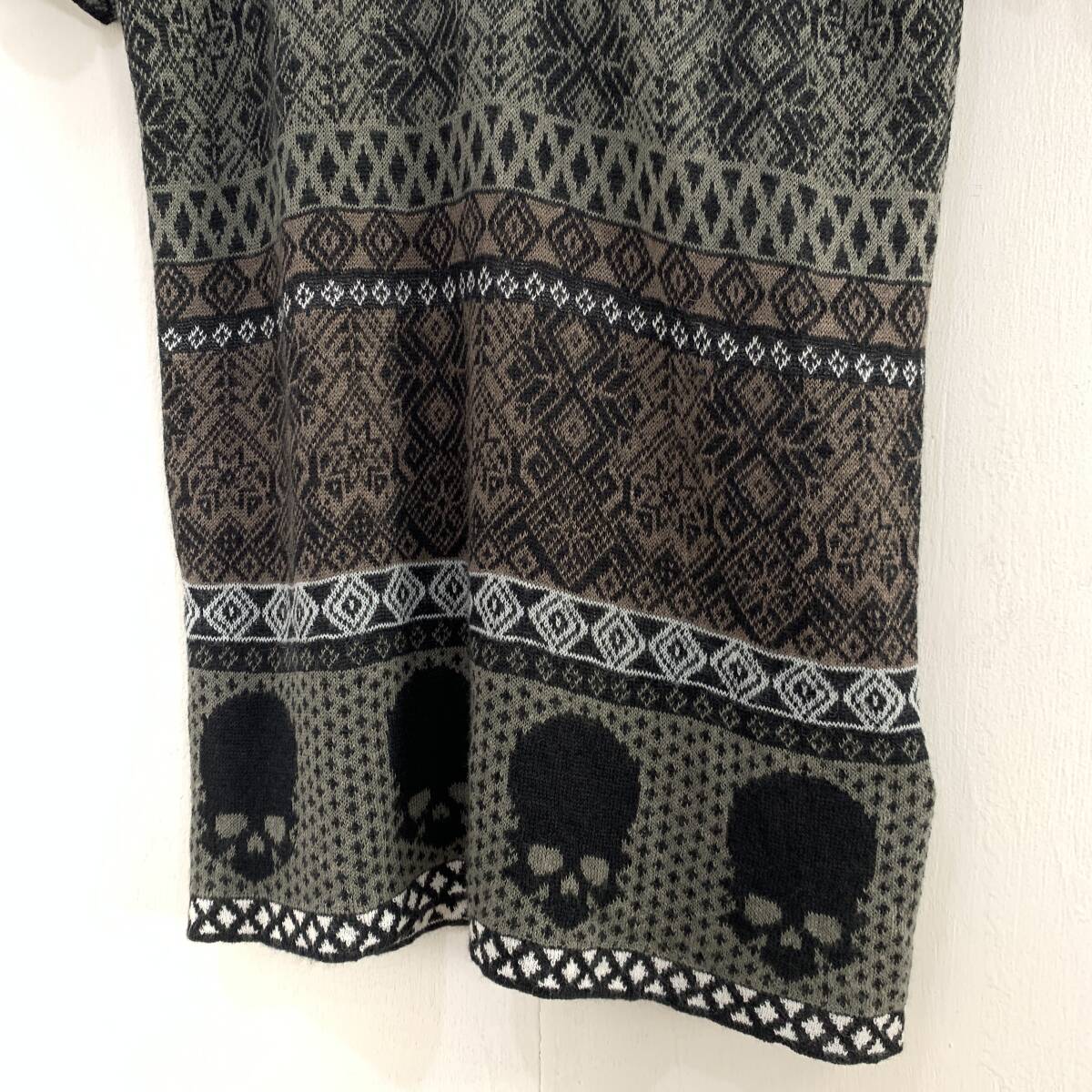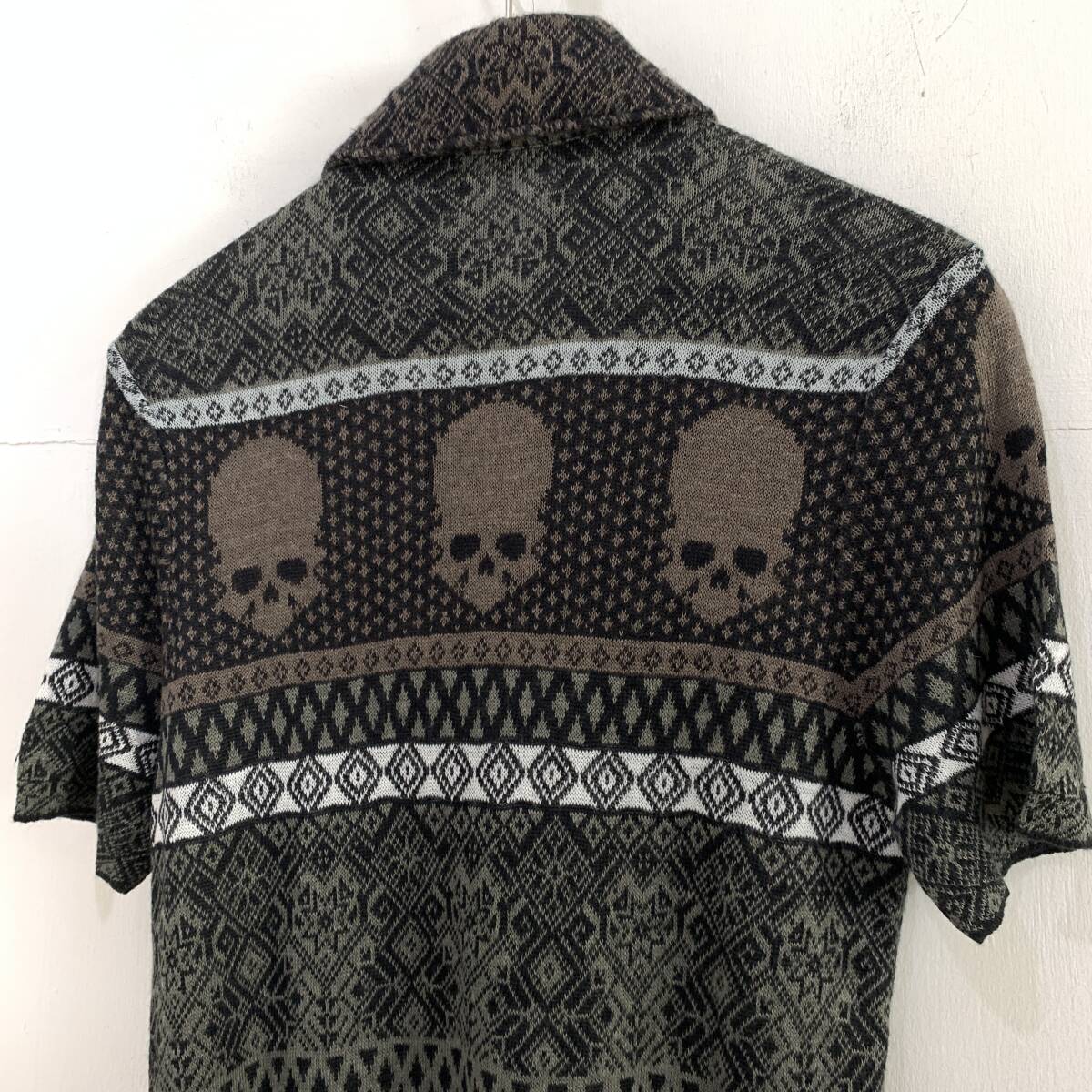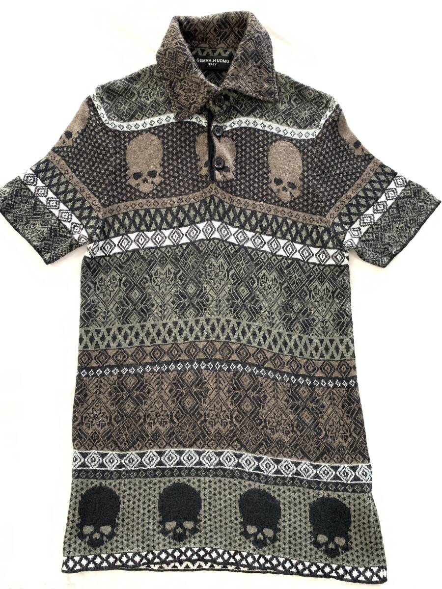 ☆GEMMA.H UOMO イタリア製 総柄 ドクロ スカル 半袖リネン混ポロシャツ 麻混 グレー×ブラウン サイズS【レターパックプラス郵送可】I