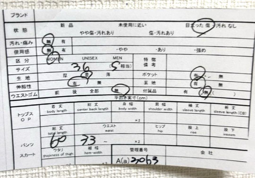 ※アパレルのブランドによりサイズ基準が異なるので、必ず採寸表をご確認の上、ご購入お願いいたします
