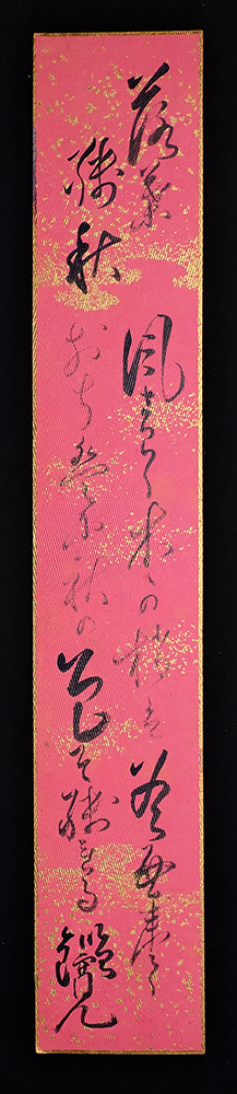 紙本(色地金砂子散料紙)肉筆未装短冊1点 作品寸法:36.2cm x 6.0cm 商品状態:実際の品を画像にてお確かめ下さい。 ★本品は印刷ではなく肉筆の作品です。 ★本品は真作保証の作品です。 出品作品の読みにつきましては、落札後のご依頼についてのみ可能な範囲で対応させて頂きます。 立花鑑寛(たちばな-あきとも) 1829-1909 江戸時代後期の大名。 文政12年6月23日生まれ。立花鑑寿(あきひさ)の孫。立花鑑備(あきのぶ)の養子となり,弘化(こうか)3年筑後(ちくご)(福岡県)柳河(やながわ)藩主立花家12代。立花壱岐(いき)を家老として藩政改革をおこない,財政の立て直しと軍備の充実をはかった。戊辰(ぼしん)戦争では陸奥(むつ)会津(あいづ)(福島県)に出兵した。明治42年2月24日死去。81歳。幼名は淳次郎。通称は次郎。 出典:講談社/デジタル版 日本人名大辞典+Plus |