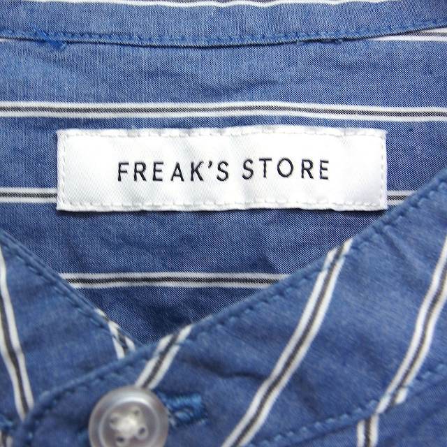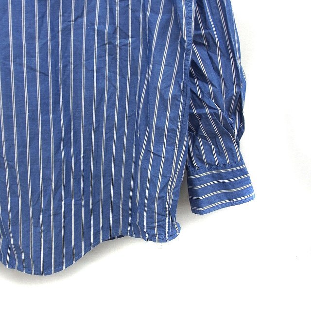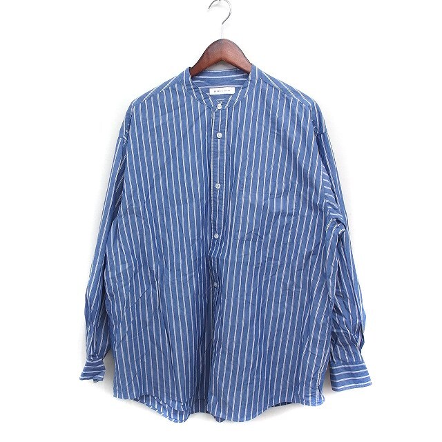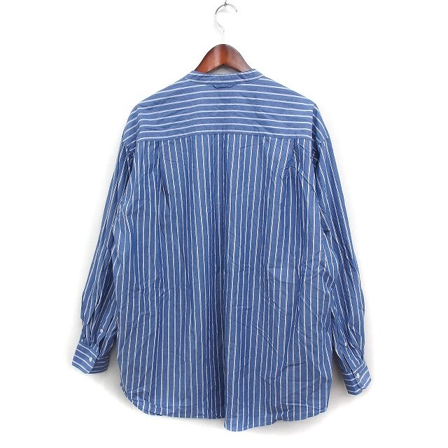 フリークスストア FREAKS STORE ストライプ シャツ カジュアル 長袖 バンドカラー コットン 綿 オーバーサイズ M ブルー 青 /FT33 メンズ