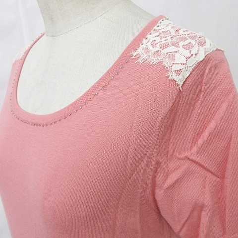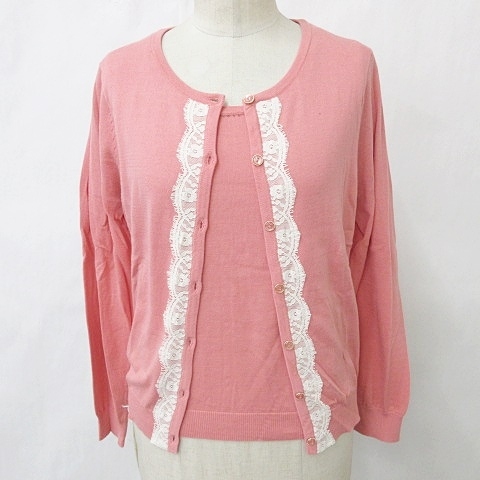 未使用品 エニィスィス エニシス anySiS ニット アンサンブル クルーネック カーディガン 長袖 インナー 半袖 ピンク 白 2 レディース
