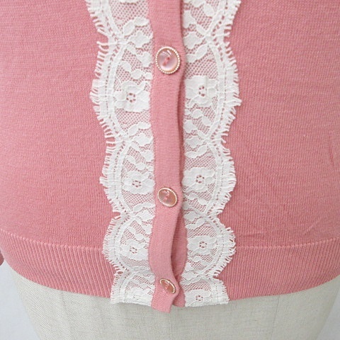 【素材】ニットカーディガン 本体 アクリル 54% 綿 46% レース部分 ナイロン 100% ニットインナー 本体 アクリル 54% 綿 46% レース部分 ナイロン 100%