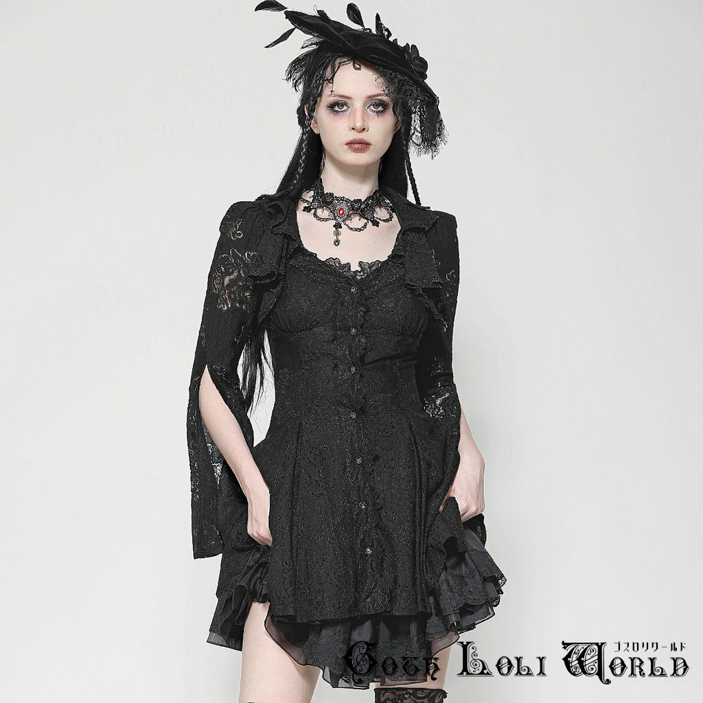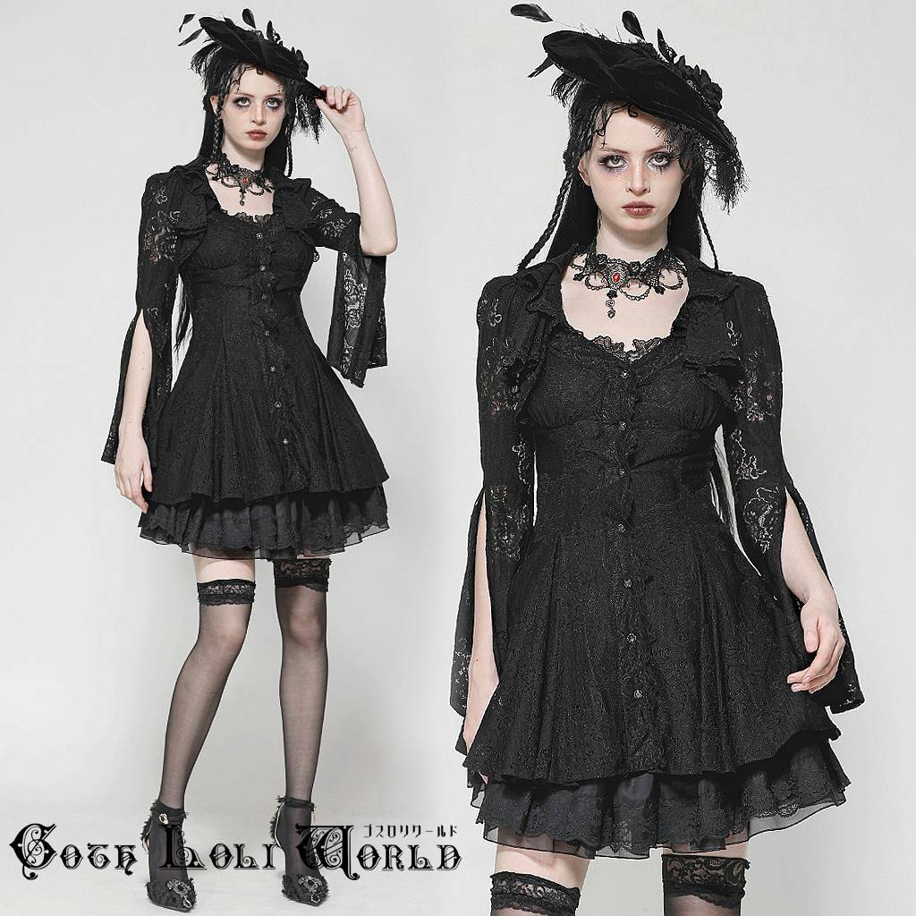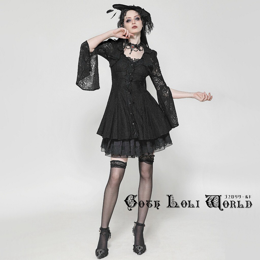 即納 DW1003-L ゴシックファッション スリットスリープ ワンピース ゴシック ゴスロリ ロリータ ロリィタ ヴィジュアル系 地雷系