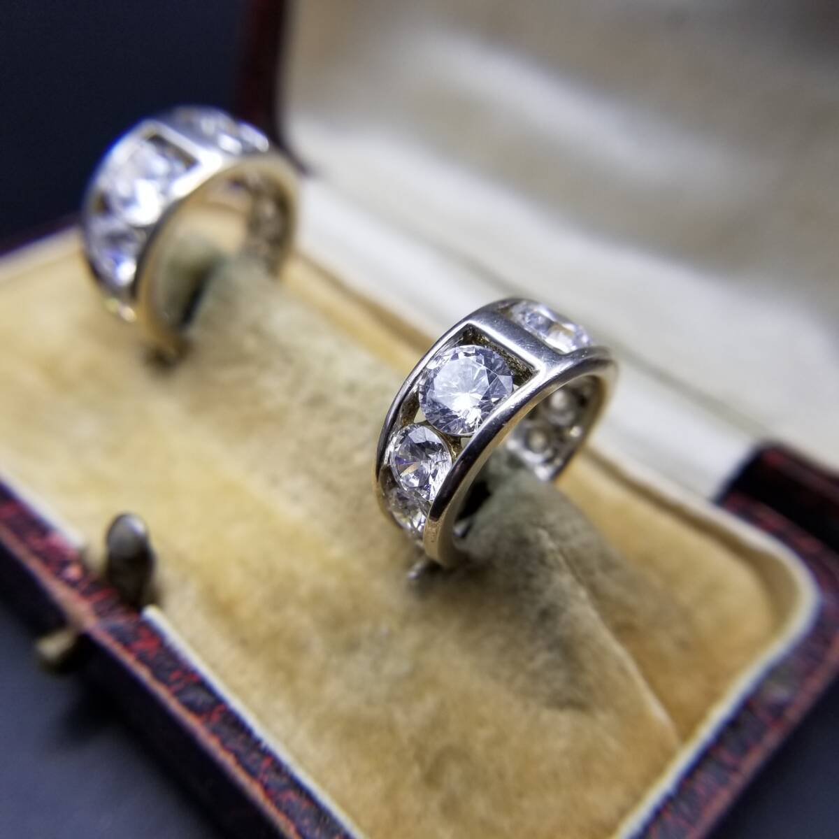 キュービックジルコニア ブリリアントカット 925 シルバー ヴィンテージ フープ ピアス 小ぶり 銀 煌めきジュエリー 上品 Y22-M