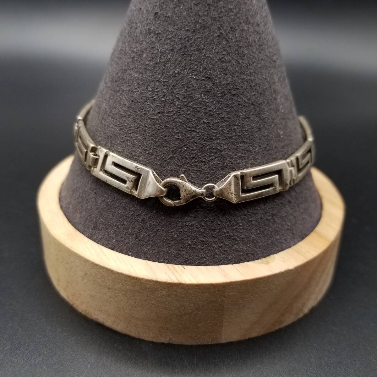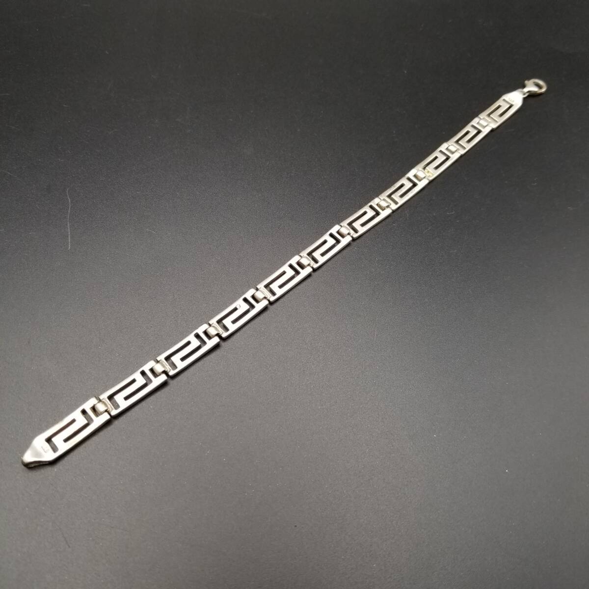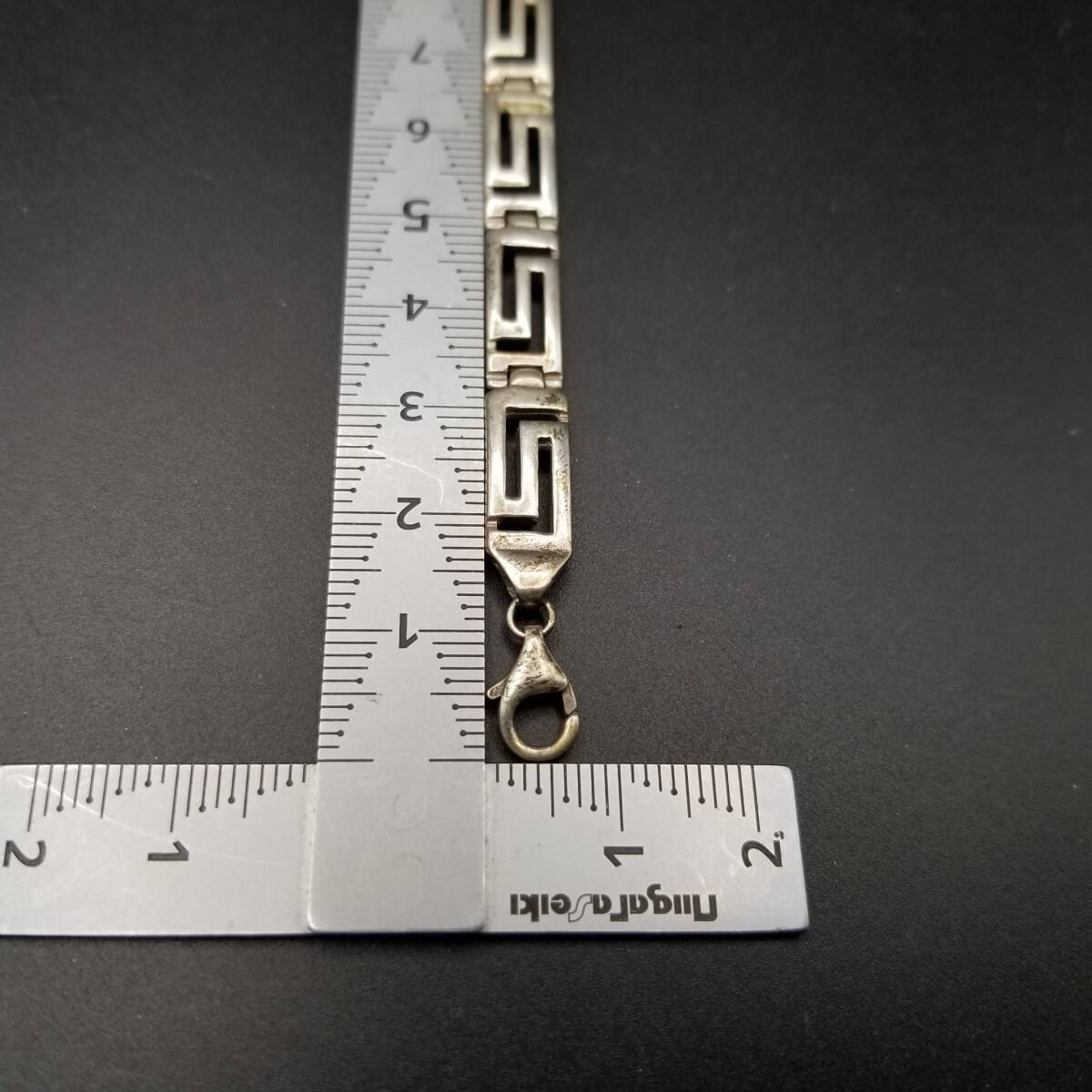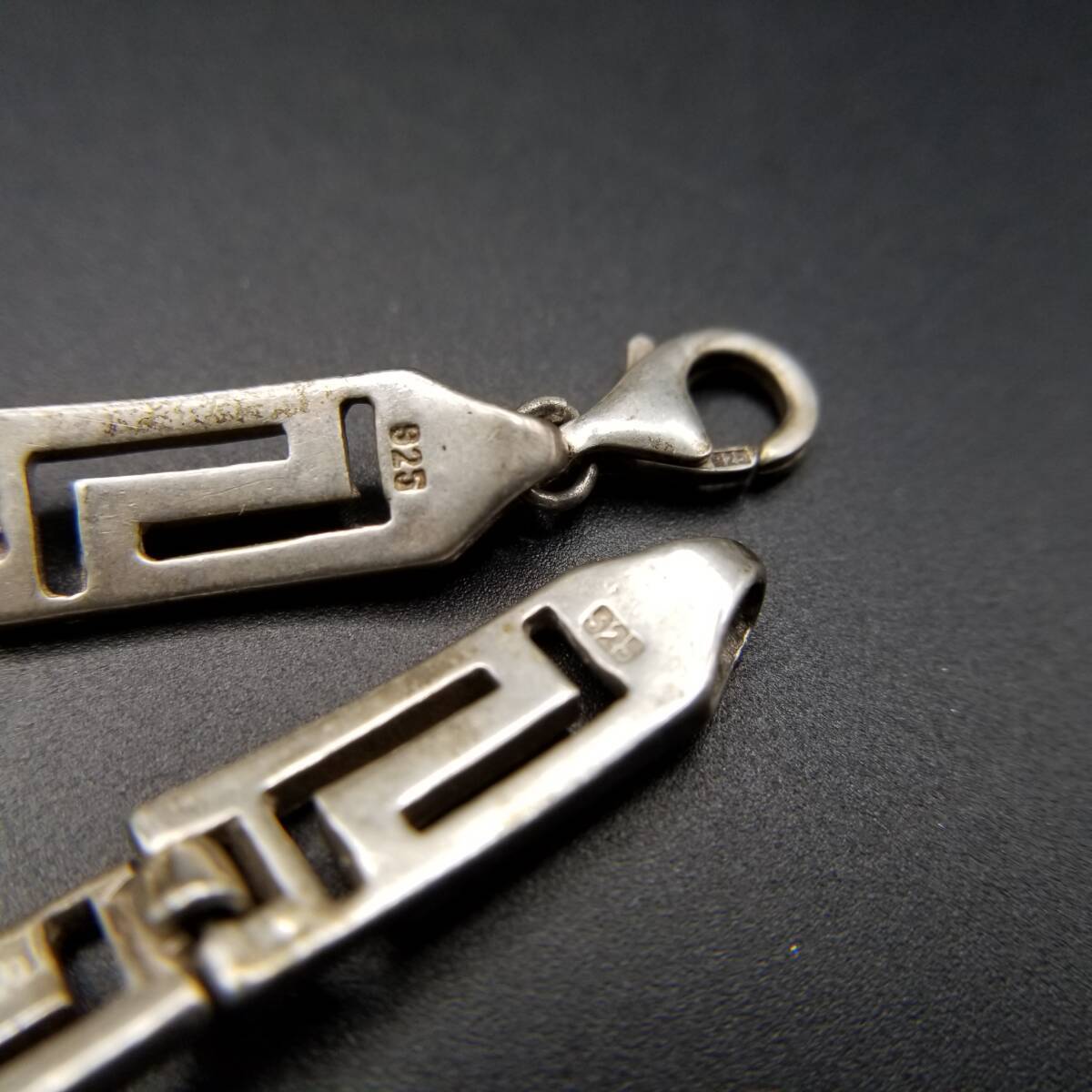 ギリシャ雷文 幾何学的模様 パネルチェーン 925 シルバー ヴィンテージ ブレスレット 銀 定番 スタイリッシュジュエリー Y22-M