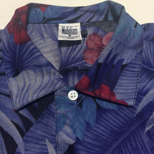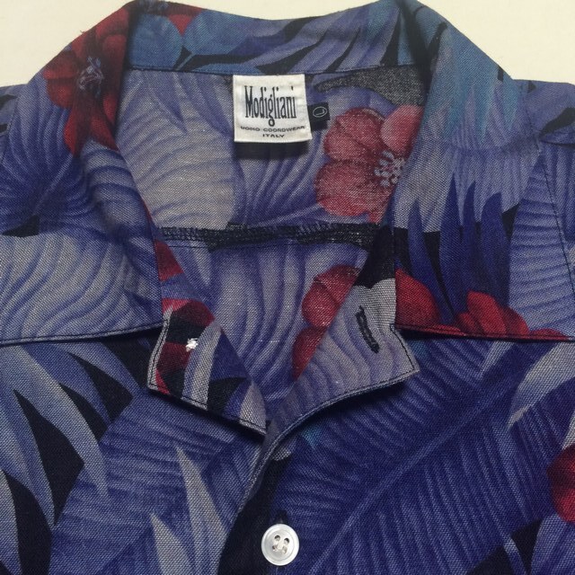| 商品説明・状態 | 1.Modigliani イタリアンデザインの半袖アロハシャツです。 2.ブルー色をベースに植物柄がAll Over Patternでプリントされています。 3. 綿+麻混紡でとても気心地の良い生地で出来ています。 4.扱いは 小杉産業でスレ、目立つ退色はありません。 | |