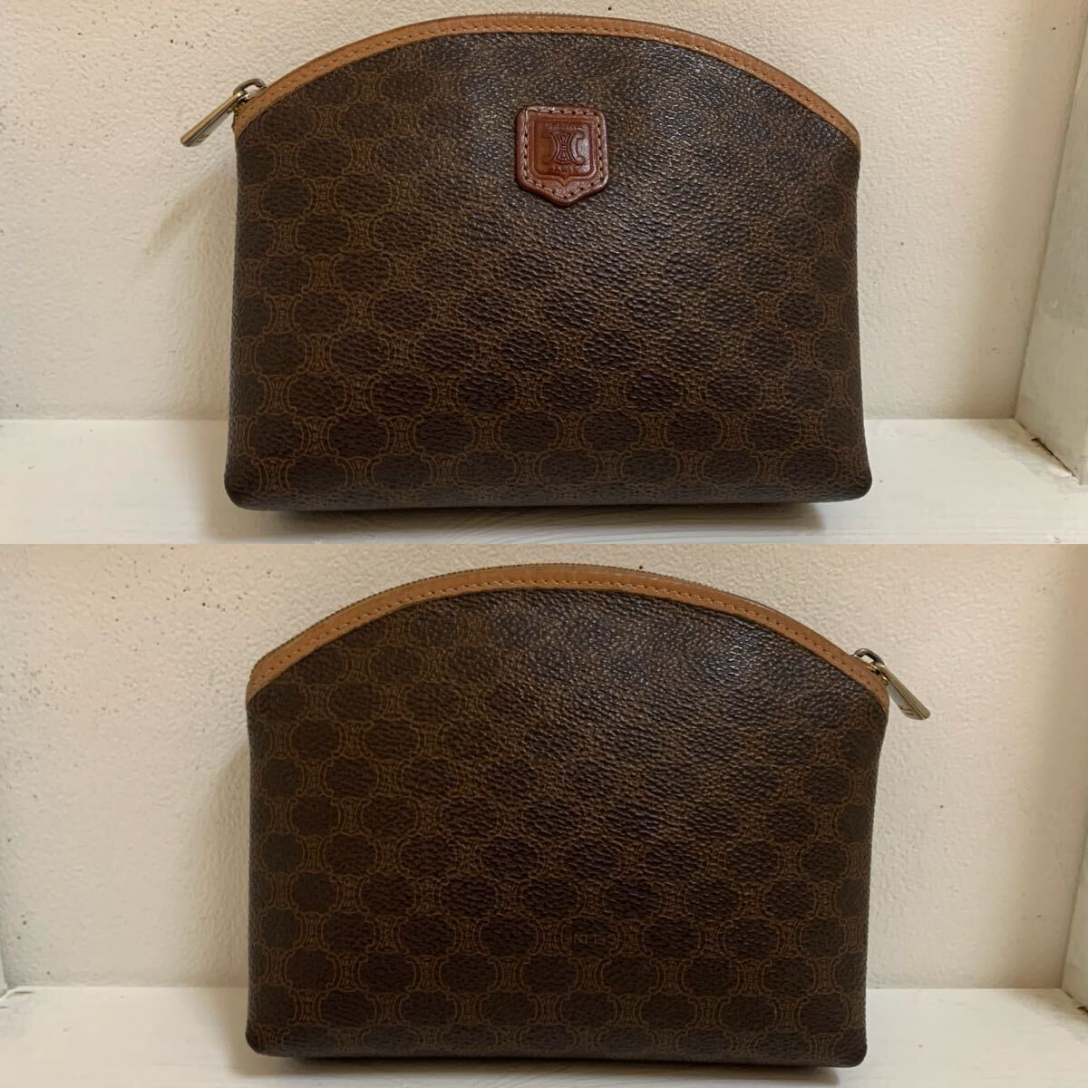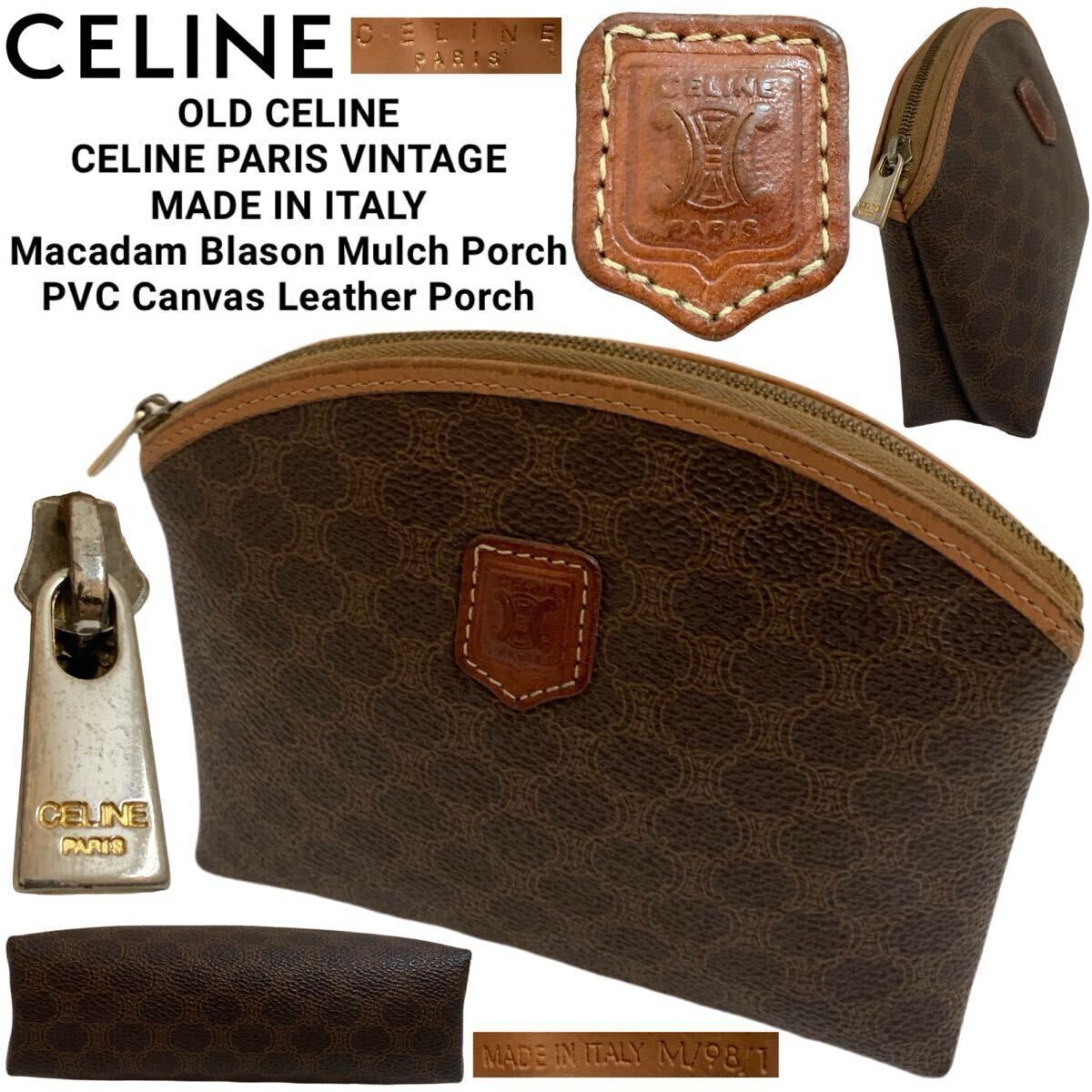 【MEMO】OLD CELINE オールドセリーヌ CELINE PARIS VINTAGE セリーヌ パリス ヴィンテージ MADE IN ITALY イタリア製 マカダム柄 ブラゾン マルチポーチ PVCキャンバスレザーポーチ 小物入れ ブラウン系 アーカイブです。