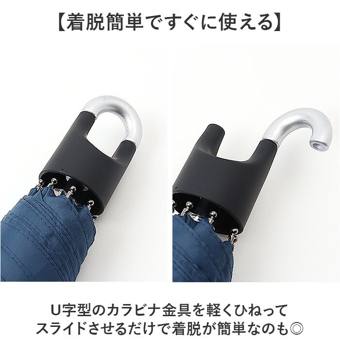 商品説明 | ・・【手元のカラビナがポイント】 ・ベーシックカラーでエイジ・ジェンダーレスで使える♪カラビナ付き折り畳み傘が登場! ・【ユニークなカラビナ手元】 ・カバンのハンドルやフックに引っ掛ければ、持ち運びがラクラク♪ ・【着脱簡単ですぐに使える】 ・U字型のカラビナ金具を軽くひねってスライドさせるだけで着脱が簡単なのも◎ ・【収納場所に困らない】 ・S字フックなどにも掛けられる構造で収納や置き場所に困らないのも魅力的。 ・【強風対応で壊れにくい】 ・強風に対応した骨構造で風で傘がひっくり返っても壊れにくい。 ・【晴れの日の日差し対策に】 ・UVカット機能も付いており、雨の日はもちろん普段の日差し対策用にも最適☆ ・【スムーズかつ安全に開閉】 ・開閉時に指先や爪を挟むのを防止する安全ろくろ付きで、簡単に開閉できる手開きタイプ。 ・【たたむ時も手間取らない!】 ・留めバンドは面ファスナーテープを採用。お子さまでも留めやすい幅広な設計。 ・【伸び防止収納袋が付属】 ・中棒シャフトが急に伸びてしまうことを防止する「伸び防止ベルト」付き。 ・【性別・年齢を選ばないカラー】 ・色味を抑えたカラーと無地デザインでシーンや、年代性別問わずに使える♪ |