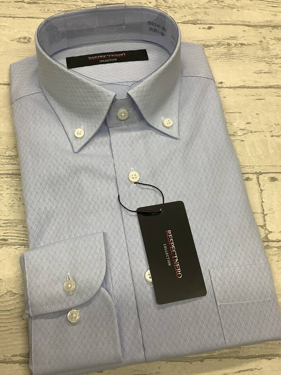 新品未使用★39-82 長袖Mサイズ  サックスブルー色 ジャガード生地 ショートポイントボタンダウンシャツ★綿ポリシャツ 形態安定
