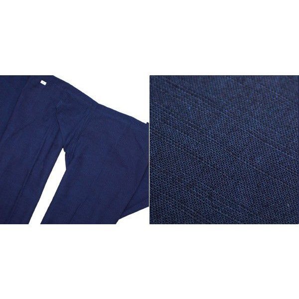 藍が安定固着するまで時間を要しますので、当初藍が着衣や肌等に付着することがあります。 まずは一度、軽く水洗いをしてから、着て頂く事をお勧めいたします。