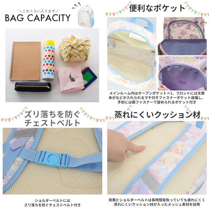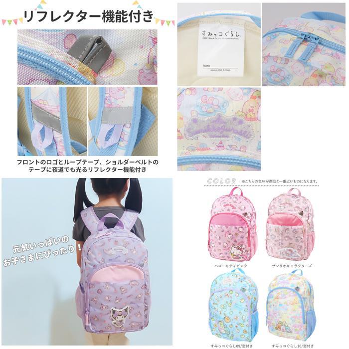 商品説明 | ・・キャラクターデザインが可愛い荷物がたくさん入るキッズリュックのLサイズが登場。 ・容量は約12LでA4サイズ対応のメインルーム♪ノートや600mlの水筒が縦に入る高さ! ・長ズボンや厚手の洋服も一枚ずつ入り、少し遠くのお出かけに便利。また、開口部はダブルファスナーで大きく開き、お弁当箱など出し入れやすいのが特徴! ・メインルーム内はオープンポケット×1と名前を記入できるネームタグ付き。 ・フロントには文庫本がなどが入れられるマチ付きファスナーポケット装備し、手前には面ファスナーで留められるポケット付き。(※すみっコぐらしシリーズのみマチ付きのファスナーポケットの中にオープンポケットがございます。) ・フロントとショルダーベルト部分にはループテープが付いており、防犯ブザーや目印になるキーホルダーの取り付けに最適。 ・さらにそれぞれキャラクターのワッペンが付いている特徴あるデザイン!(※すみっコぐらしシリーズのみ、クリア窓仕様です。) ・サイドに折りたたみ傘やウォーターボトルがちょこんとしまえるオープンポケット×2を配置。 ・さらにフロントのロゴとループテープ、ショルダーベルトのテープに夜道でも光るリフレクター機能付き。 ・背面とショルダーベルトは長時間背負っていても疲れにくく蒸れにくいクッション材が入ったメッシュ素材を採用。ショルダーベルトには、ズリ落ちを防ぐチェストベルト付き。 ・お出掛けやアウトドアイベントがもっと楽しくなる!男の子にも女の子にも人気のキャラクターデザインをラインナップ。 |