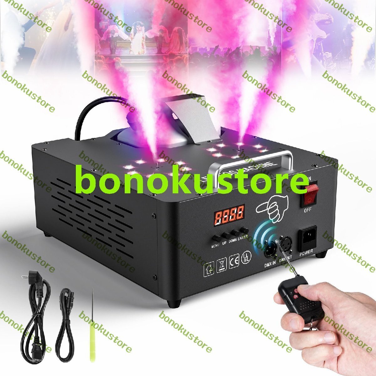 2000W LEDライトフォグマシン、30000CFM 8+8カラフルなLEDライトスモークマシン、リモコン、DMXおよび手動制御付き、結婚式、パーティー、ステージショー、ダンス用