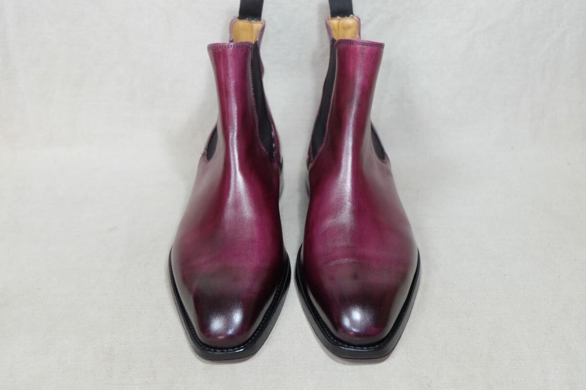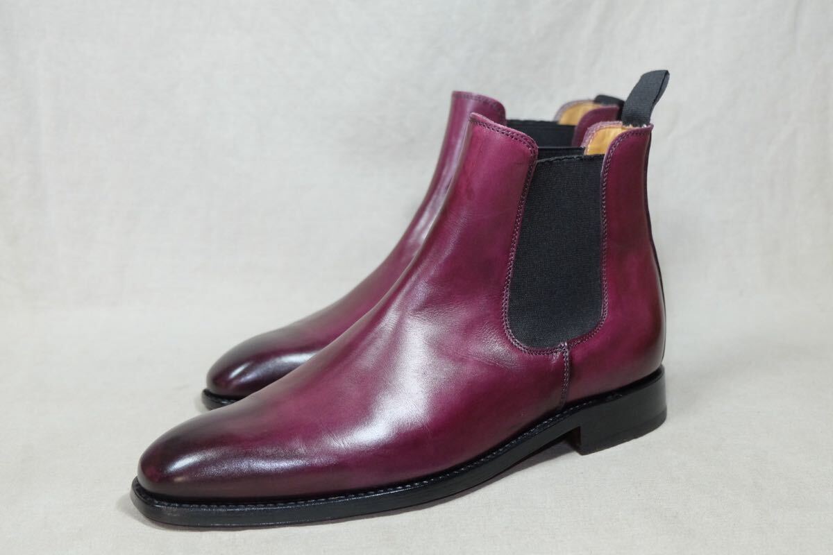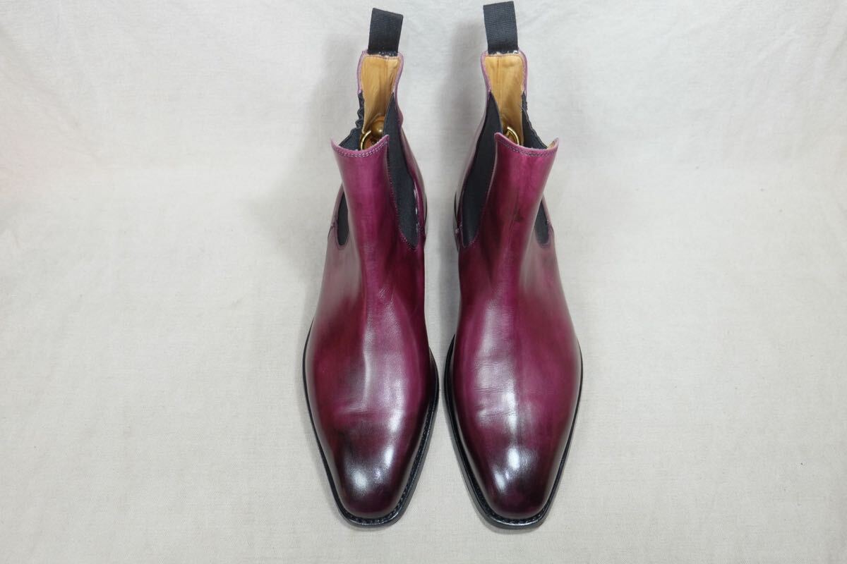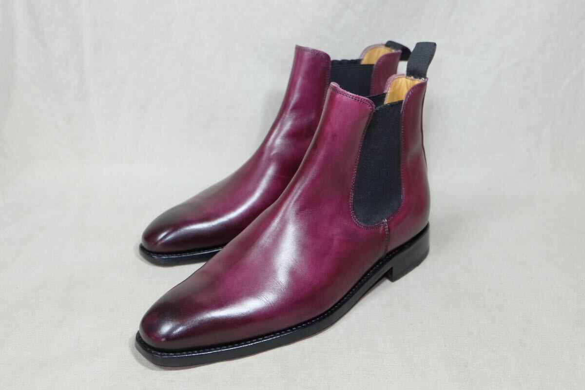 着用少Titla Classic×Berwick トレーディングポスト取扱 きめ細かく上質なカーフレザー使用 手染めパティーヌされた美しいサイドゴアブーツ UK6 スペイン製高級手製革靴 パープル レザーソール レザーヒール GoodyearWelted製法 ビジネスシューズ クリーニング&メンテナンス済み カルミナ、Berwick、TLB好きに | |||