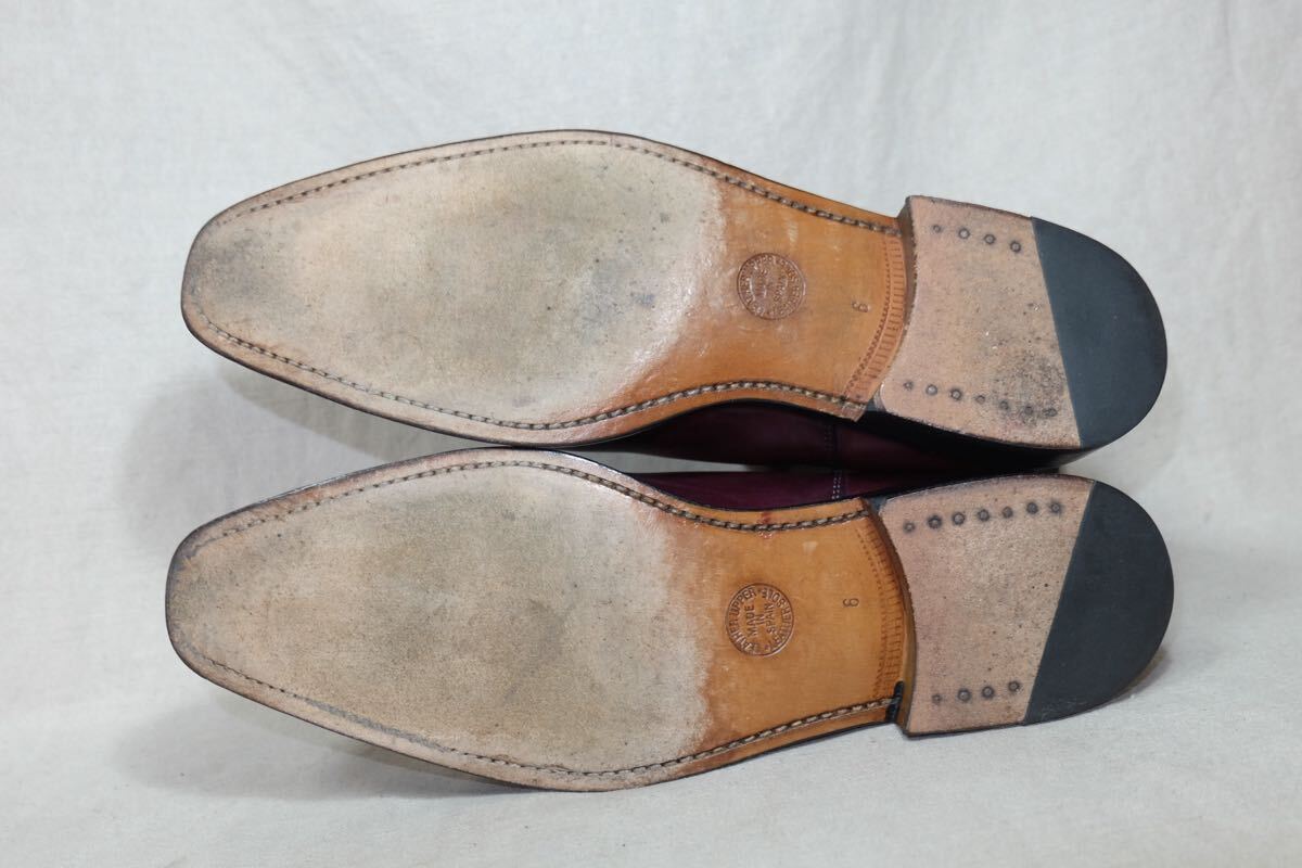 この度はアクセスありがとうございます。 スペインの最高級シューズメーカーが製作した日本のこうきゆ高級革靴専門店トレーディングポストでも取扱いのあったTitla Classicの作り、デザイン、素材全てが極上なサイドゴアブーツになります。艶のあるきめ細かいカーフレザーをアッパーに使用し、美しく洗練されたデザインに落とし込まれています。ソールはすべてレザーを積み上げたレザーヒールに、レザーソールで仕上げるなど高級手製靴らしい美しい仕上げとなっている大変贅沢な作りです。製法はGoodyear welted製法で履きやすく、また堅牢にソール交換が出来るため実用的でもあります。繊細なハンドメイド技術で贅沢に作り込まれた希少で作りのいい1足ですので永くお楽しみいただけるかと思います。 カルミナ、TLB、Berwickなど革質、品質共に最高級の革靴がお好きな方に履いていただきたい素晴らしい手製靴ですので、この機会にぜひご検討よろしくお願いします。 サイズ:UK6( 約25cm) 型:サイドゴアブーツ アウトソール:30cm ソール最大幅:10.7cm ソール:レザーソール 素材:カーフレザー カラー:パープルアンティーク 生産国:スペイン 状態:10段階中【8】 アッパー:永く使用いただける美品です。 ソール:永く使用いただける美品です。 付属品:なし 基本的にはノークレームノーリターンなのでご不明点等あればお気軽にご質問、ご連絡ください。 注意事項 確認はしておりますが、中古品のため小さなキズ、汚れ等を見落とす場合があるので神経質な方はご入札をお控えください。 サイズはあくまで標準的なサイズ感なので、実寸やメーカーサイズをご参考頂きますようお願いいたします。 三日以内にご連絡いただけない場合、評価の末再出品させていただきますのでご了承ください。 | |||