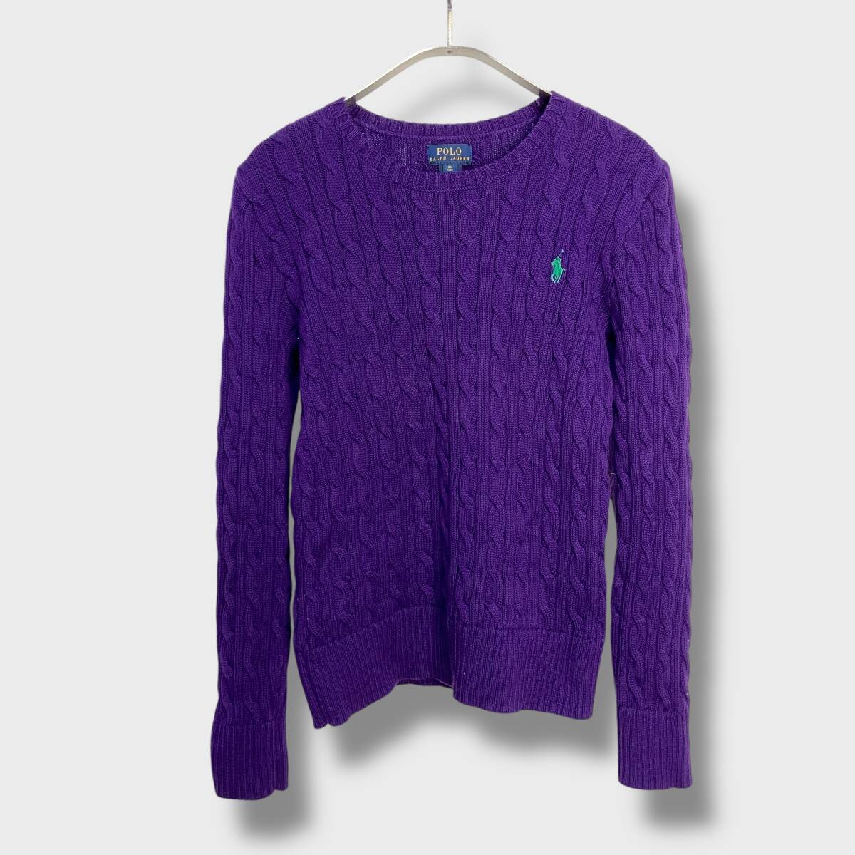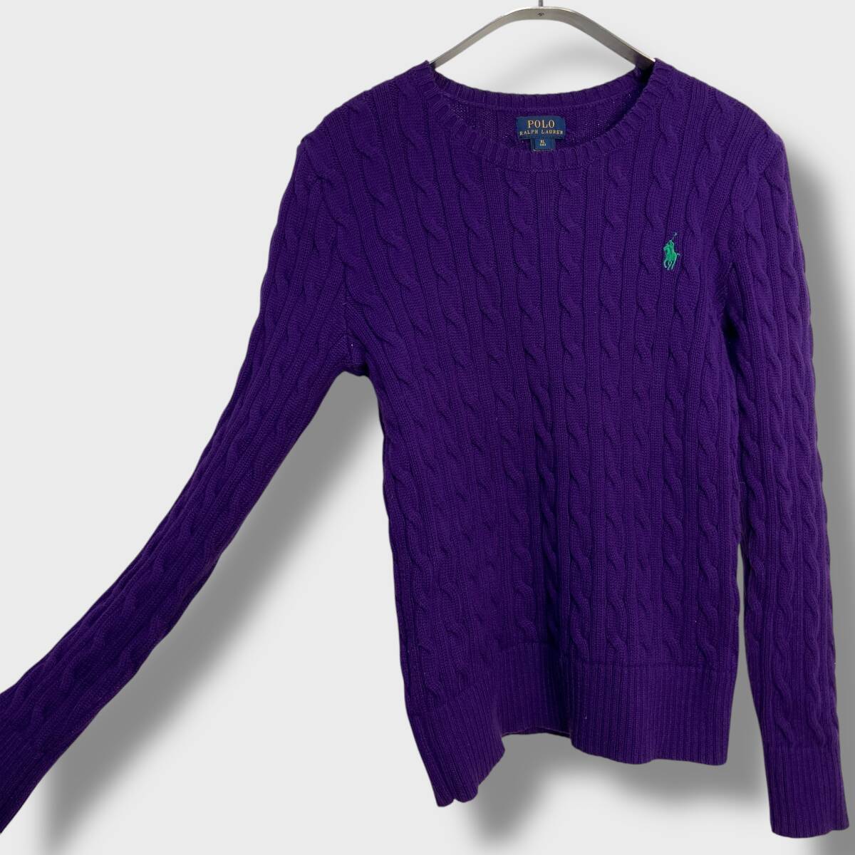 ☆RalphLauren☆ラルフローレン☆ケーブル編みコットンニット☆パープル☆キッズガールズXL(16)