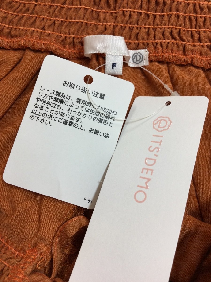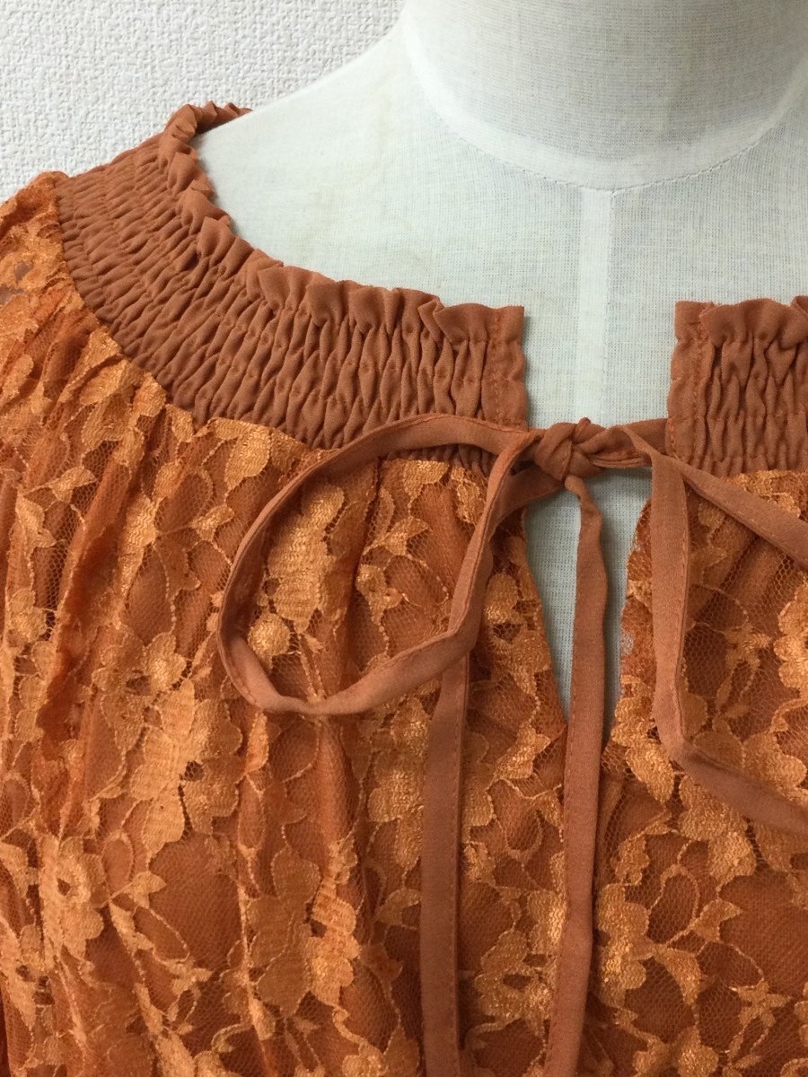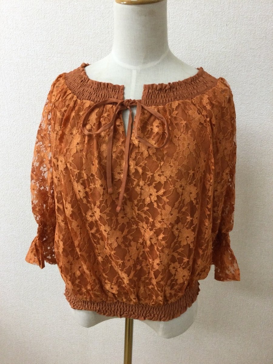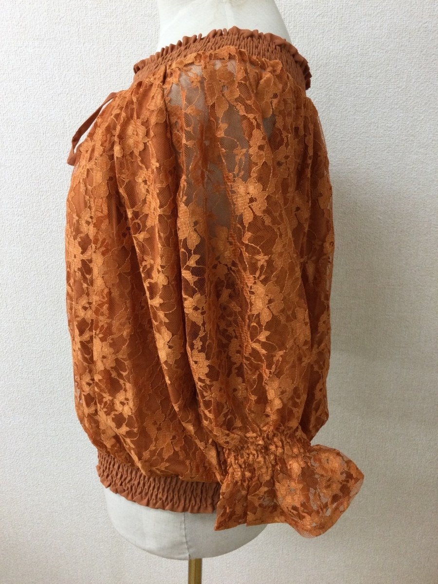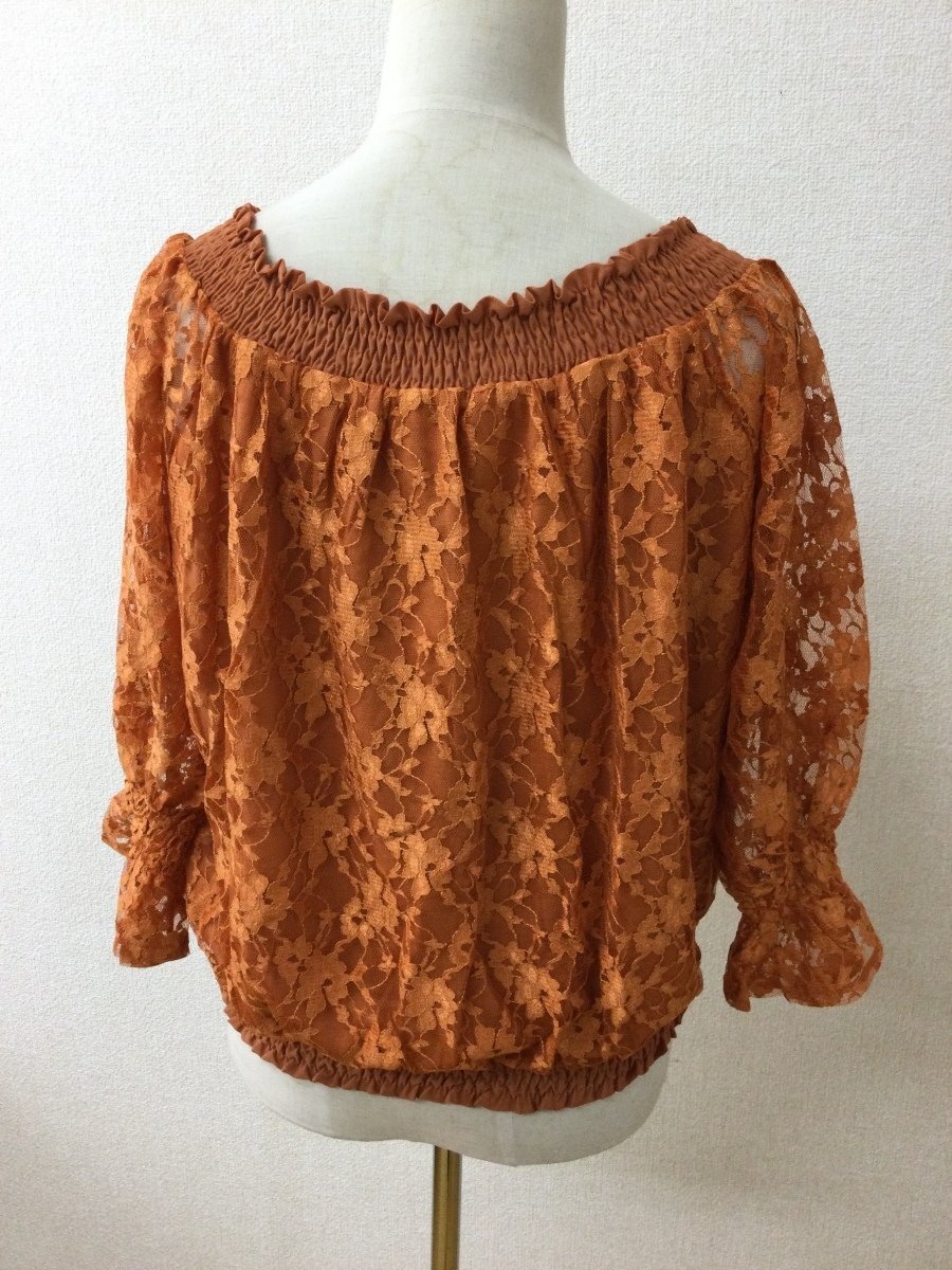 | 管理番号:99^135971 IT’S DEMO タグ付き未使用! レースのプルオーバー 茶オレンジ色 表示サイズ:F 実寸(参考)