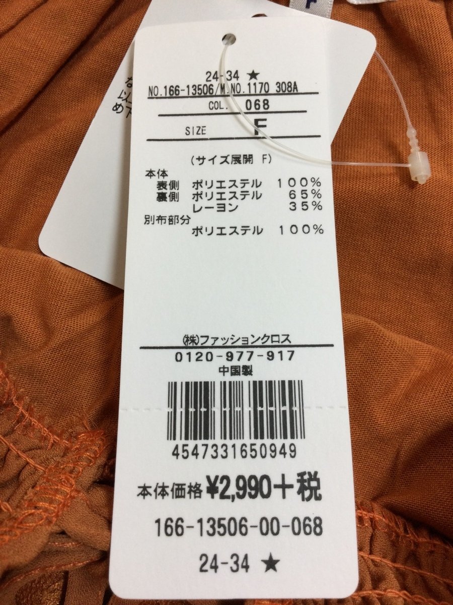 このお品は春夏向けです。 タグ価格は2990円+税 |