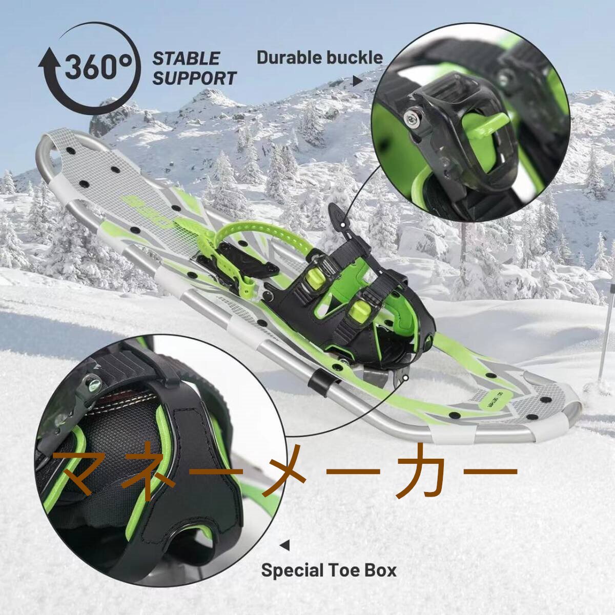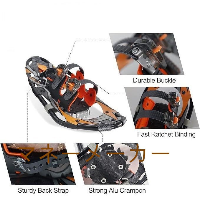 素材】スノーフィート 屋外スノーシュー は耐久性のある軽量の航空機用アルミニウムフレーム 鍛造アルミニウム合金のアイゼン スインテリアは柔らかなEVAフォームで包まれており、暖かく快適な感触が得られます 軽量地形航空グレード スノーシュー 屋外スノーシュー 寒い冬の間に足を保護します