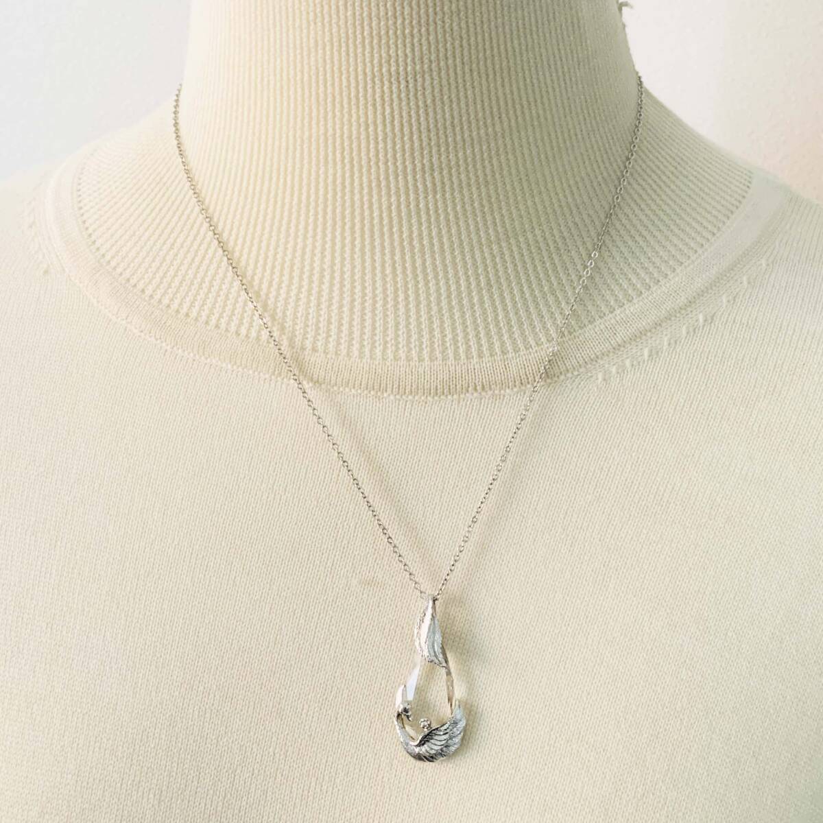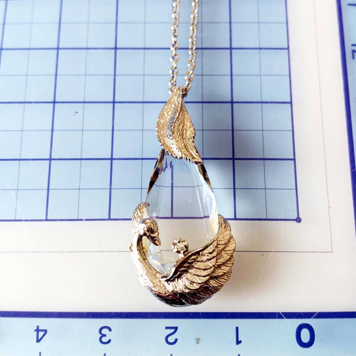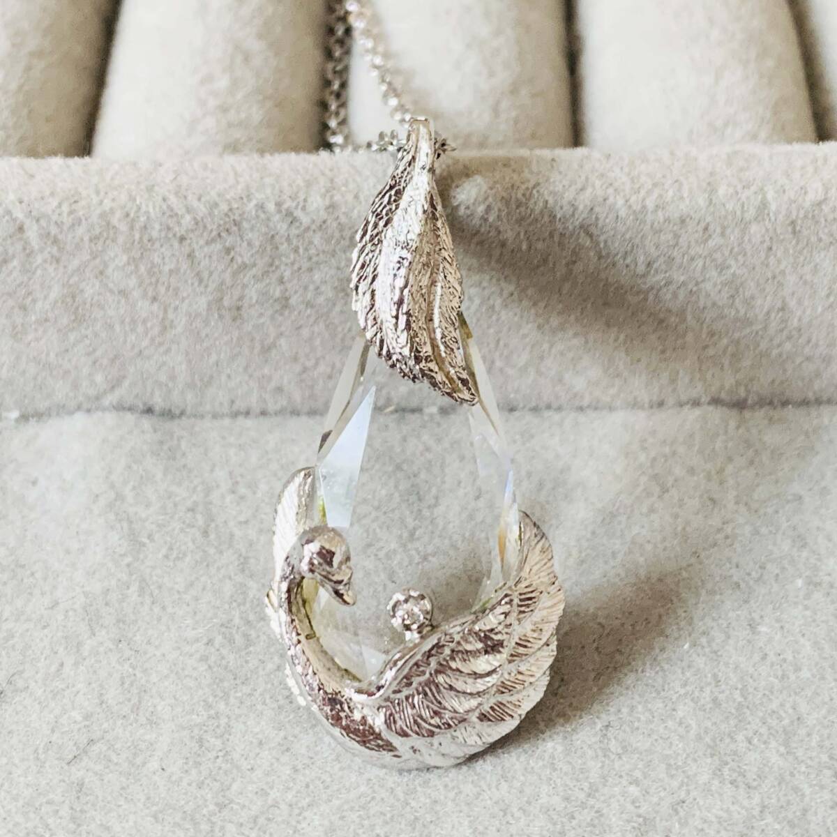美品 天然白水晶 ダイヤ風CZ 白鳥 銀色ネックレス No.6024