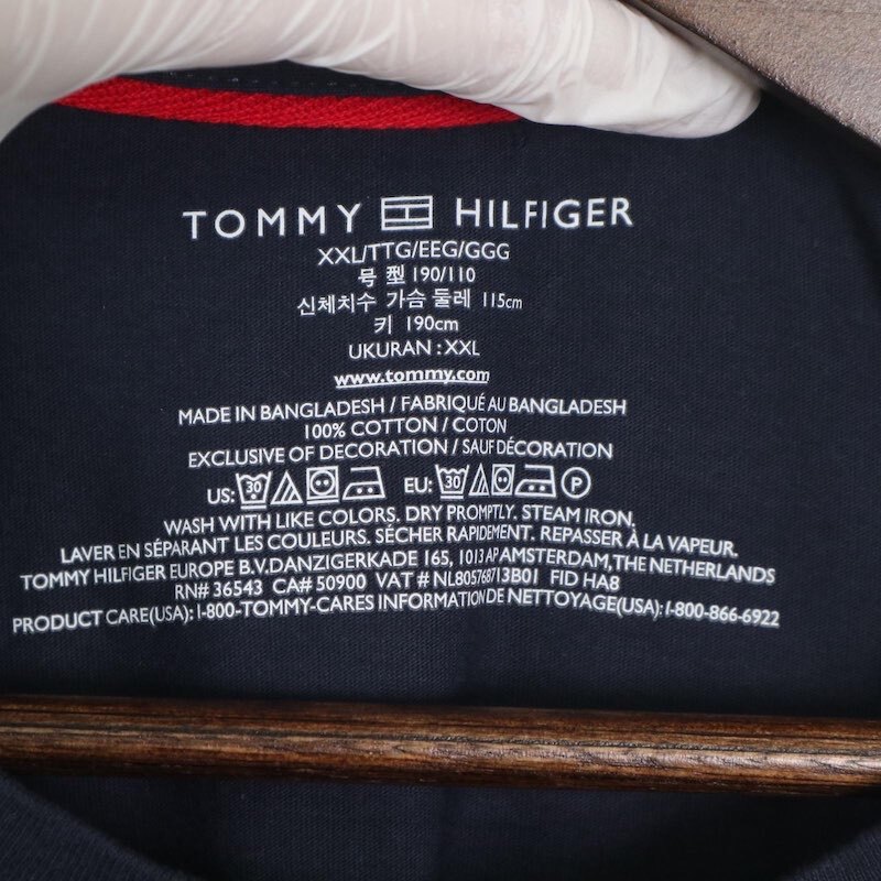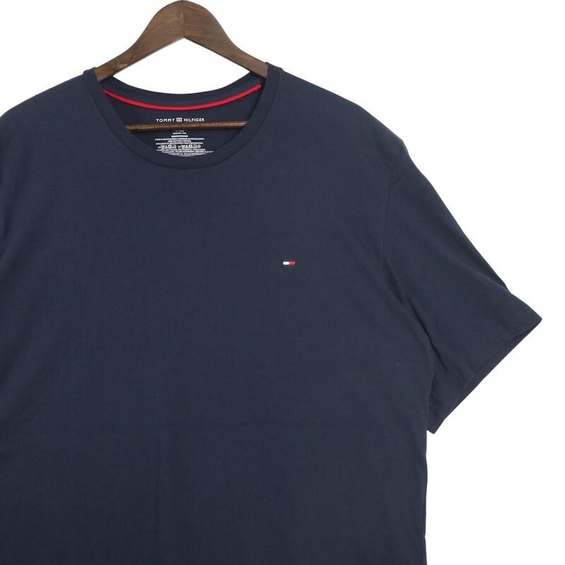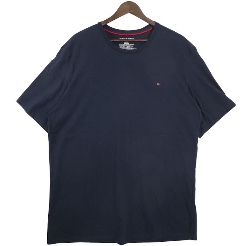Tommy Hilfiger トミーヒルフィガー クルーネック半袖Tシャツ メンズUS-2XL ワンポイント刺繍ロゴ ネイビー hsc-0332n
