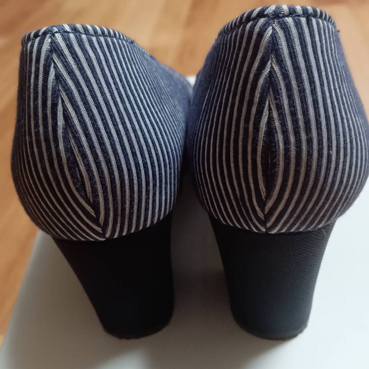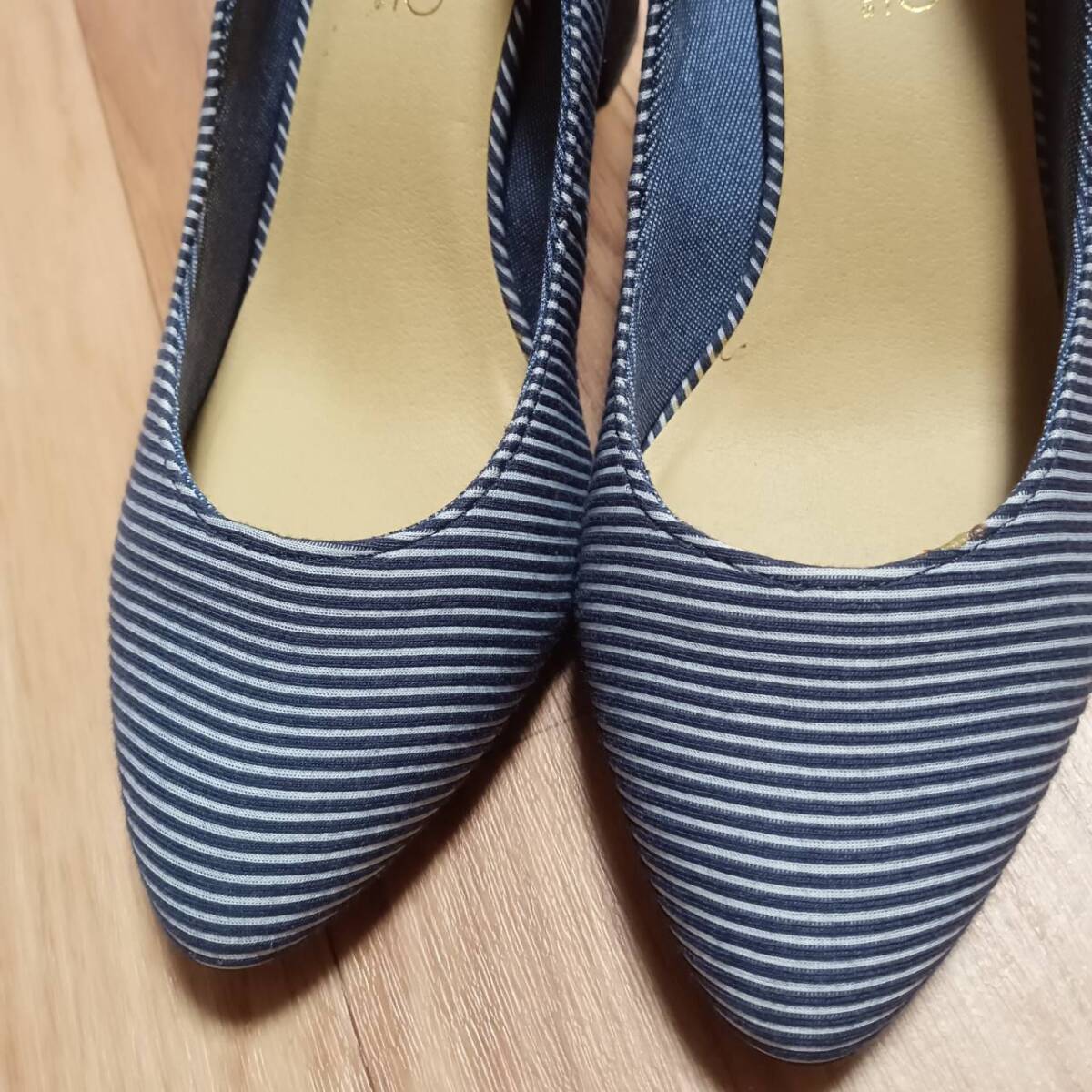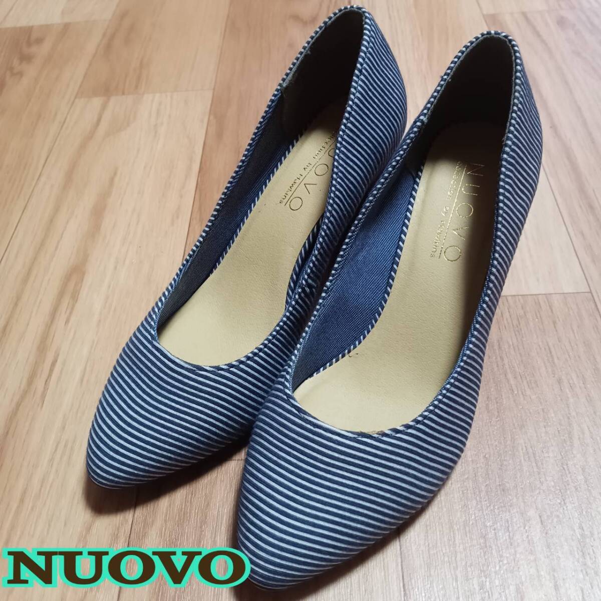 NUOVO ヌオーヴォ パンプス サイズ Sサイズ 約22.5cm ヒール 約 7cm カラー ブルー x 白 ボーダー柄 付属品: 本体 【 商品状態 】 商品の状態と致しましては、UESD商品になります。 UESD品の為多少、スレ、キズ等あるかも知れませんが 特記するようなダメージ等は見当たりません。 画像にてご確認の上、ご入札お待ち申し上げます。 | |||