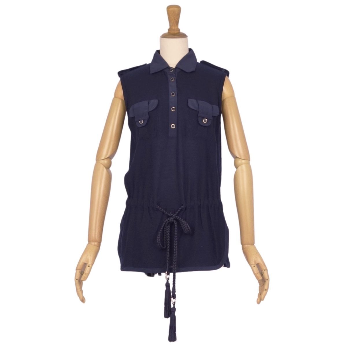| 美品 サルヴァトーレ フェラガモ Salvatore Ferragamo ニット セーター ノースリーブ ウール レディース XS ネイビー |