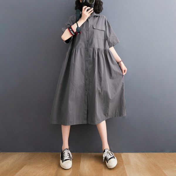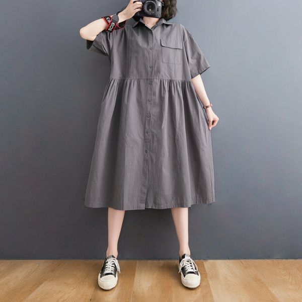 ★★★レディース ワンピース シャツワンピー フレアスカート 半袖 FX48