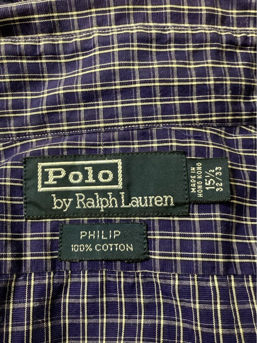 POLORALPH LAUREN ラルフローレン PHILIP フィリップ チェック柄 ボタンダウンシャツ ブルー セレクト メンズ 古着 ビンテージ
