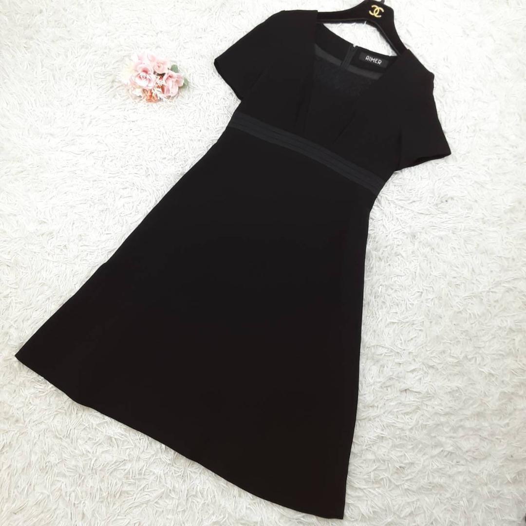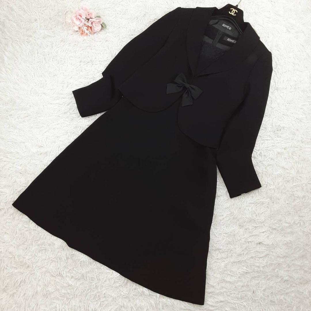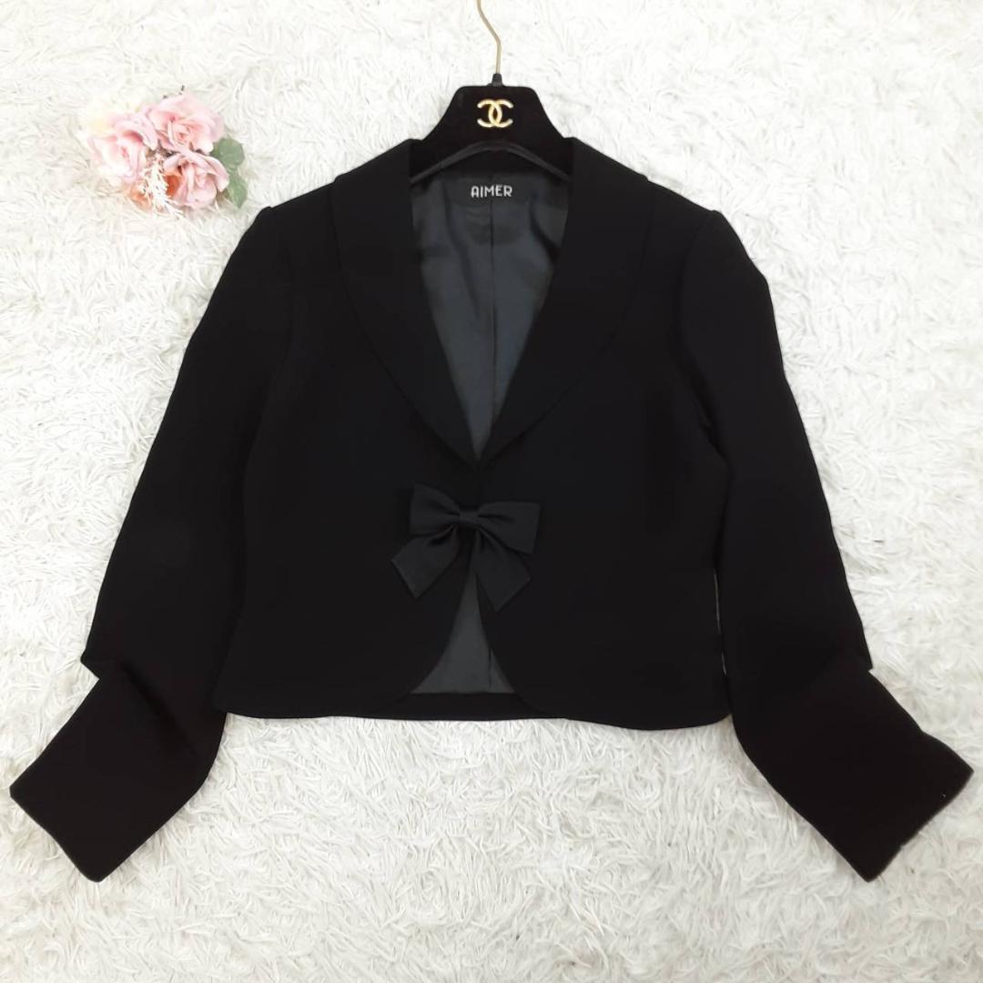 美品◎AIMER エメ フォーマルワンピースセットアップ ジャケット ブラックフォーマル リボン付き ブラック 黒