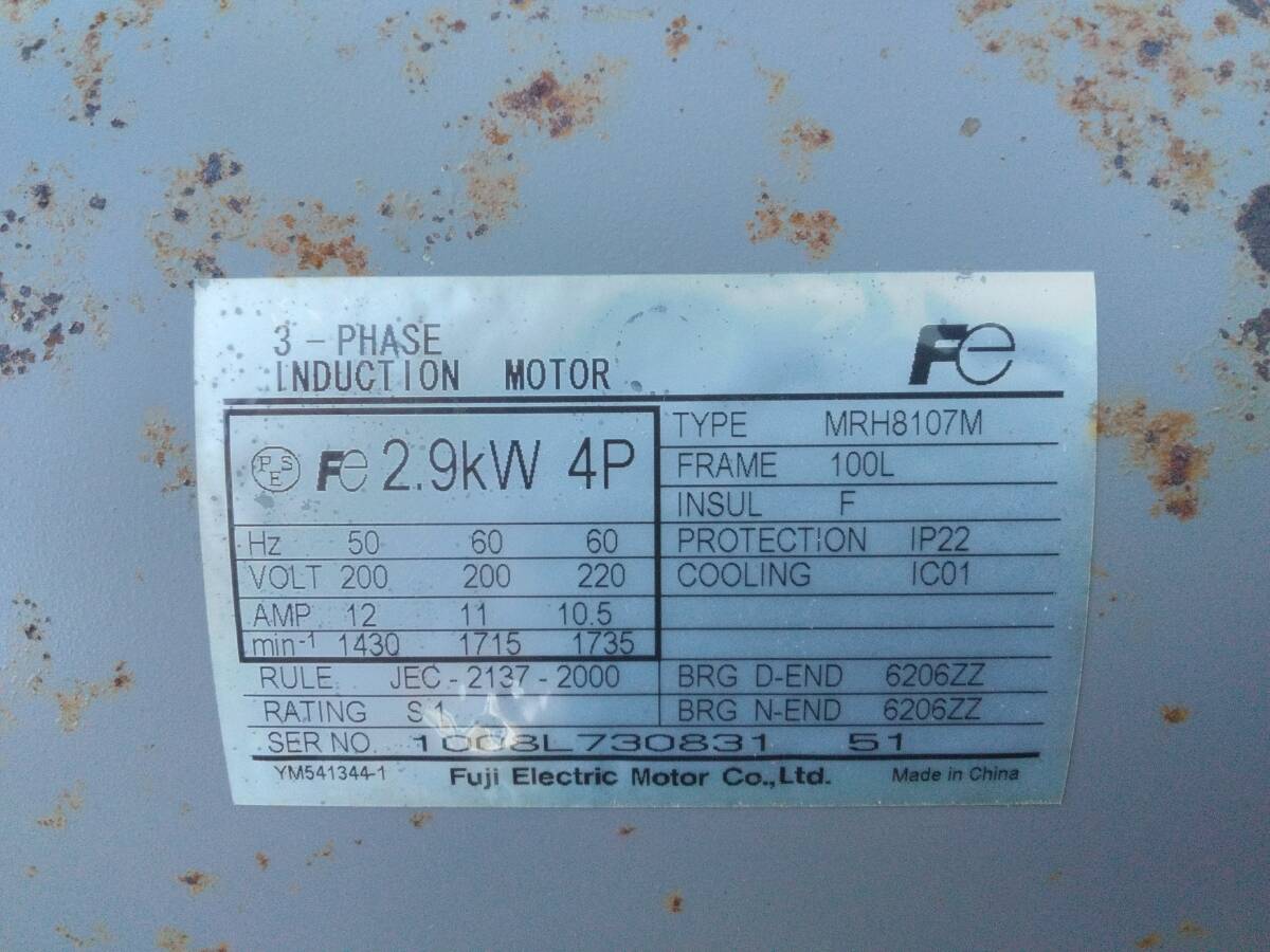 宮城 富士電機 モーター 三相200V 2.9 作動品 50Hz 60Hz兼用 交換用部品 中古 店頭販売 農機具市場 岩沼