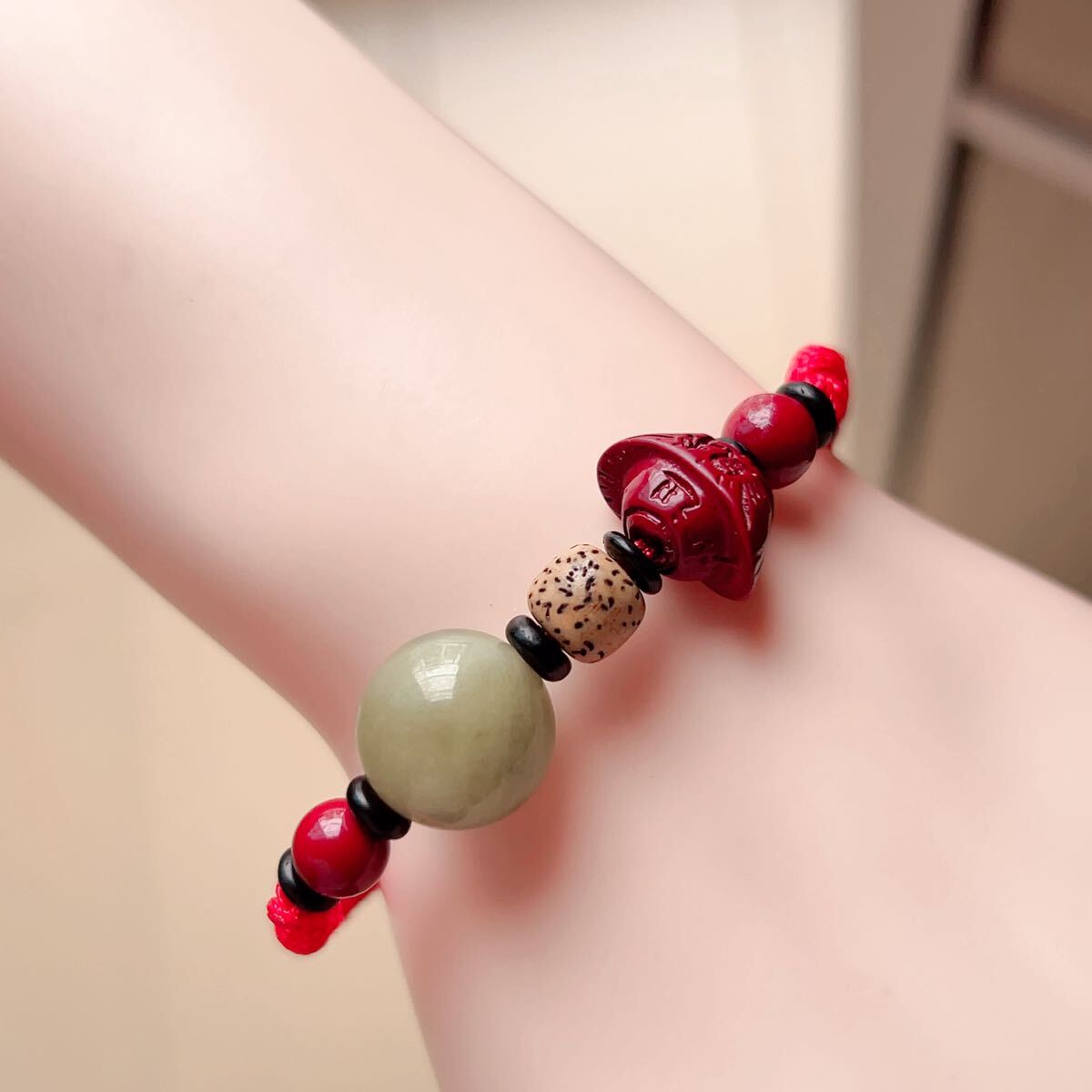 ◇和田玉+辰砂+星月菩提◇ヒスイ◇ブレスレット◇パワーストーン◇天然石◇巾着袋付き◇プレゼントにも030B4223