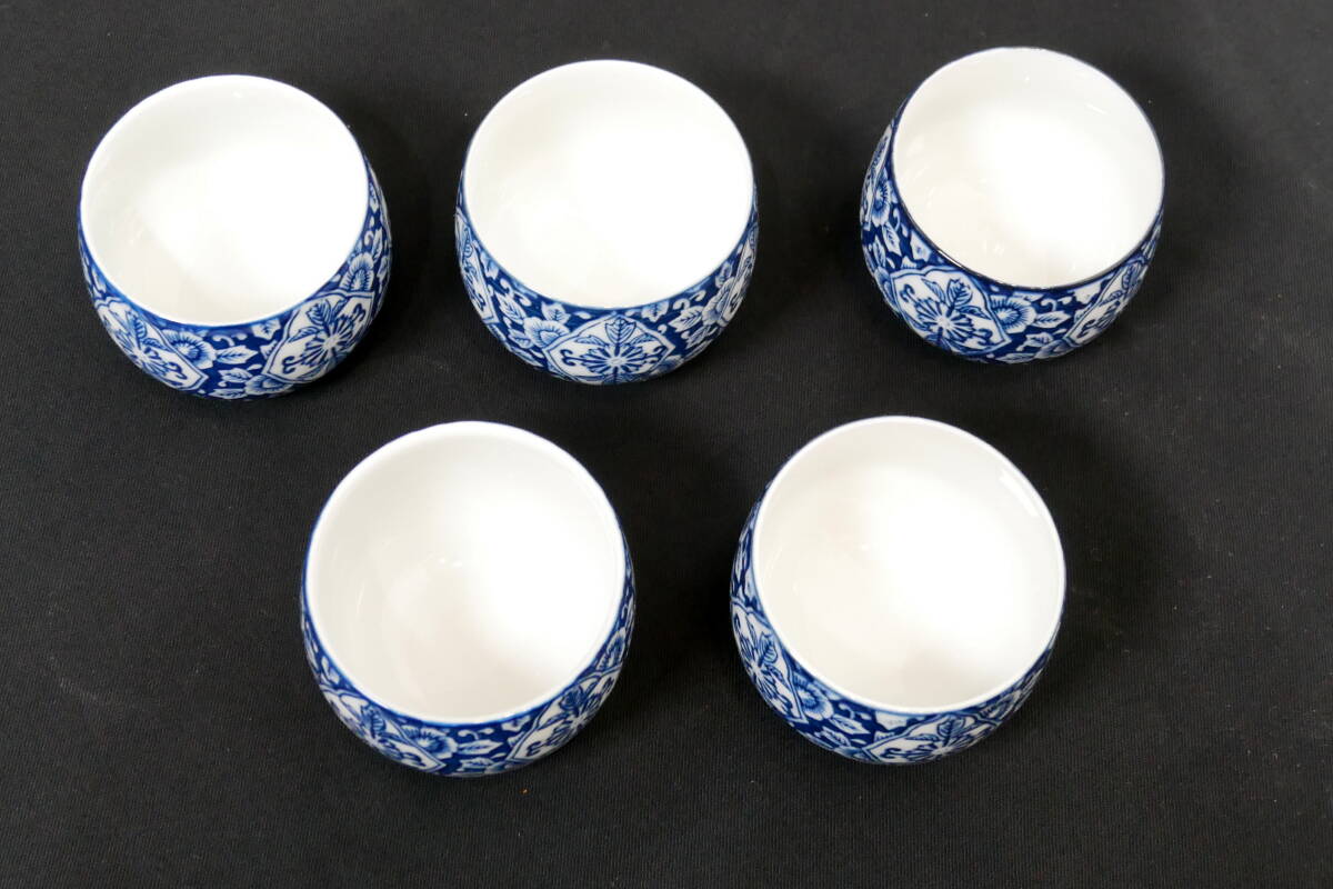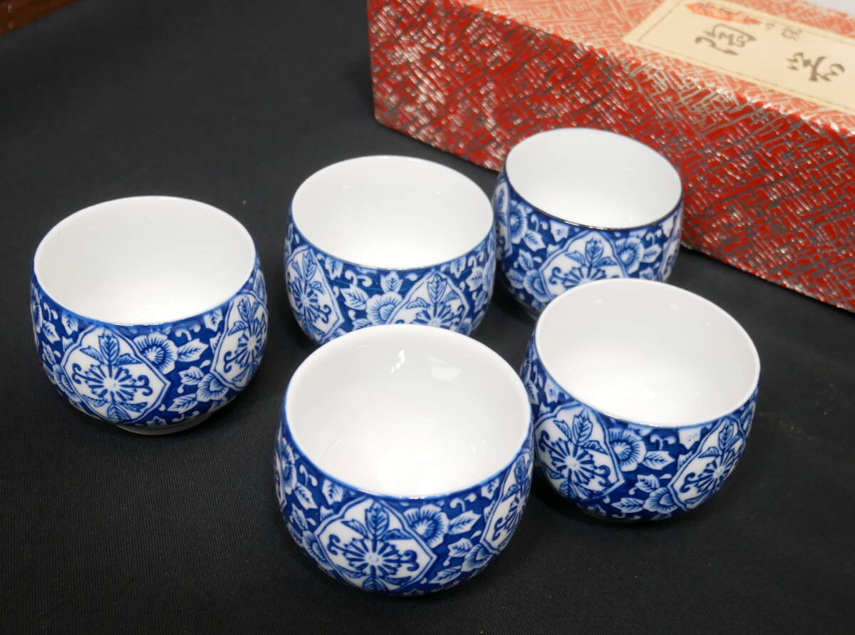 | ▲(R704-H178) 未使用 有田焼 西峰作 牡丹菊煎茶揃 5客セット 湯呑 茶器 和食器 口径約7cm×高さ約6cm 箱付き | ||