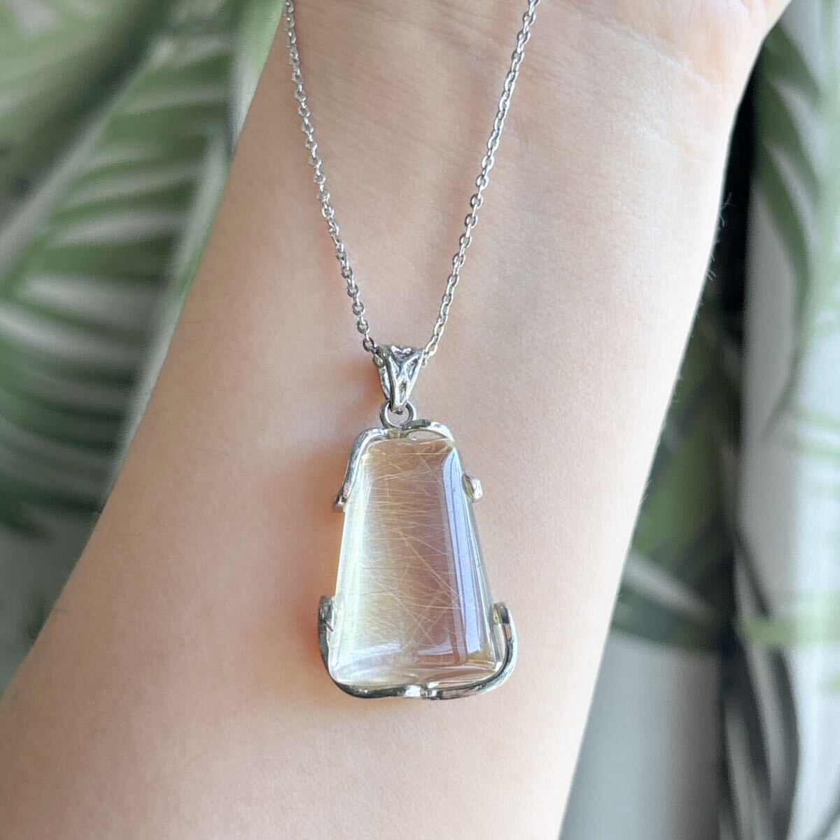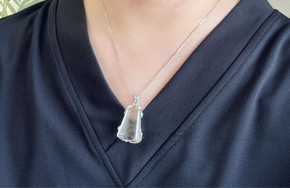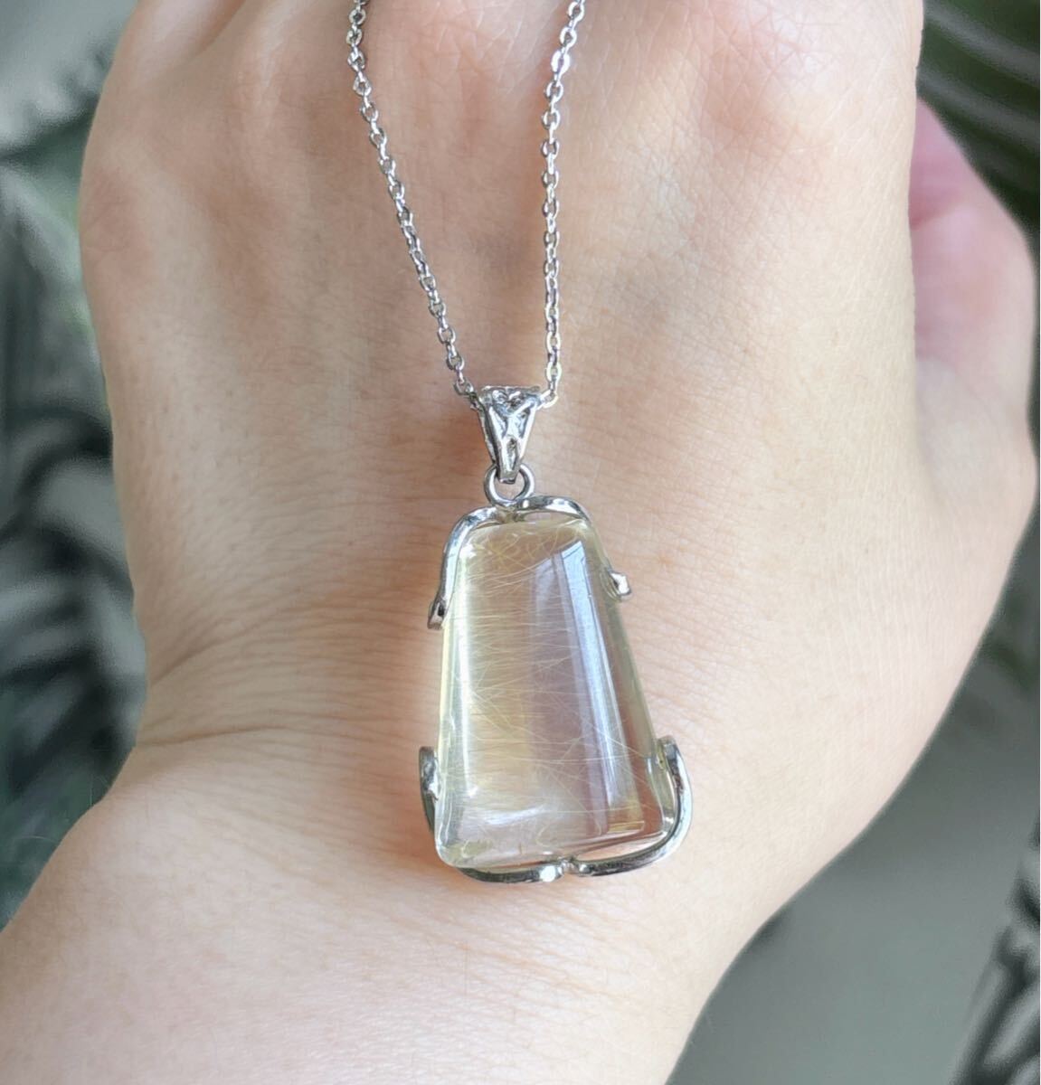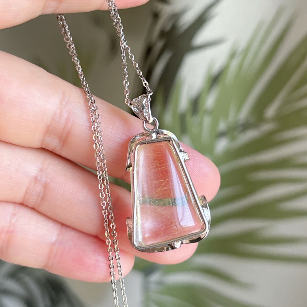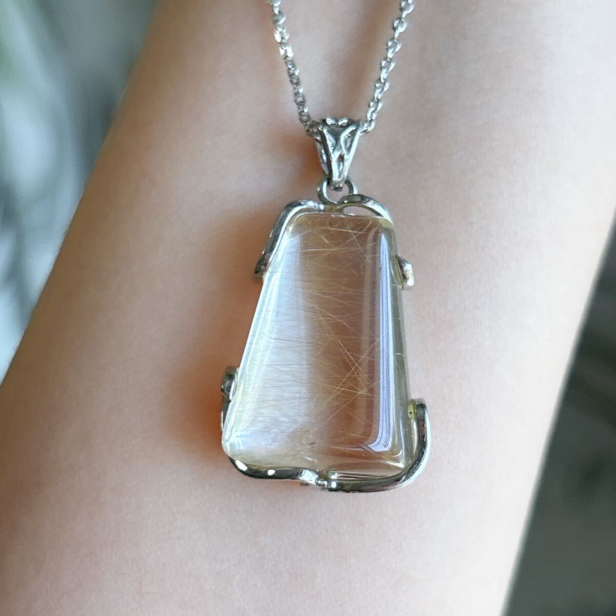 天然石 タイチンルチルクォーツのペンダントサイズ約:18.8mm*27.5mm*厚さ9mm;