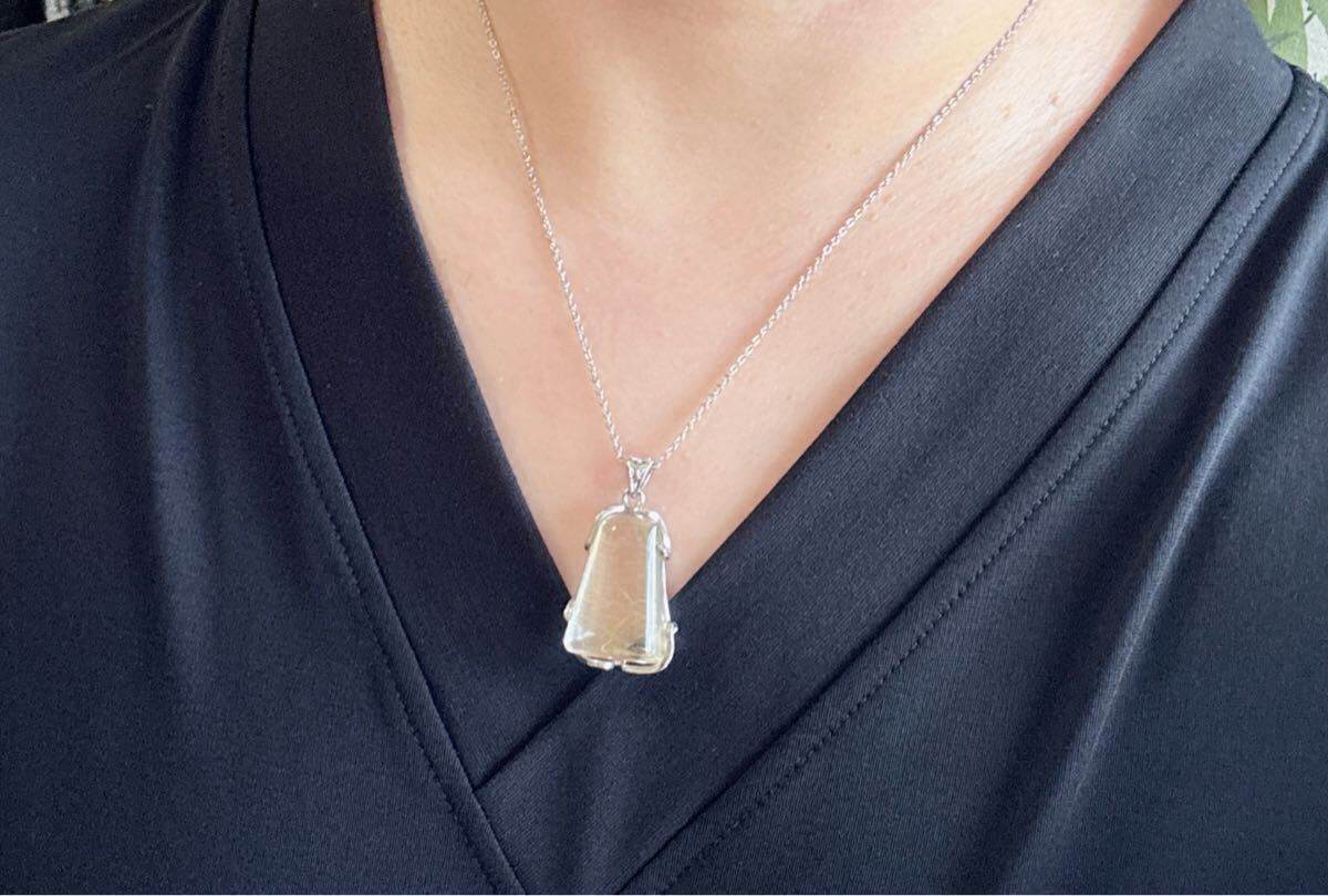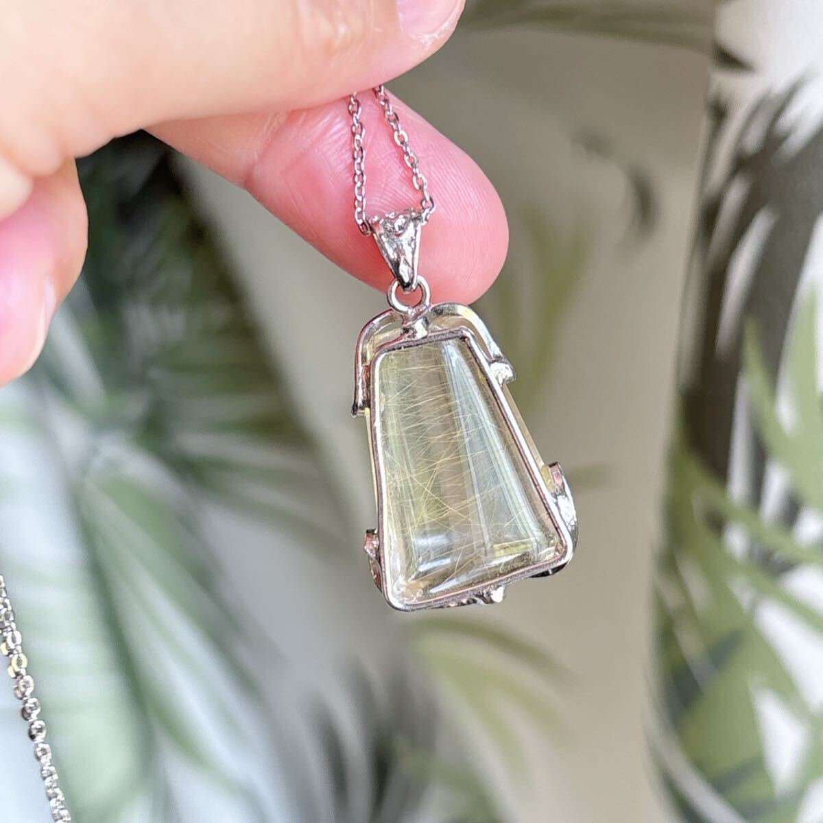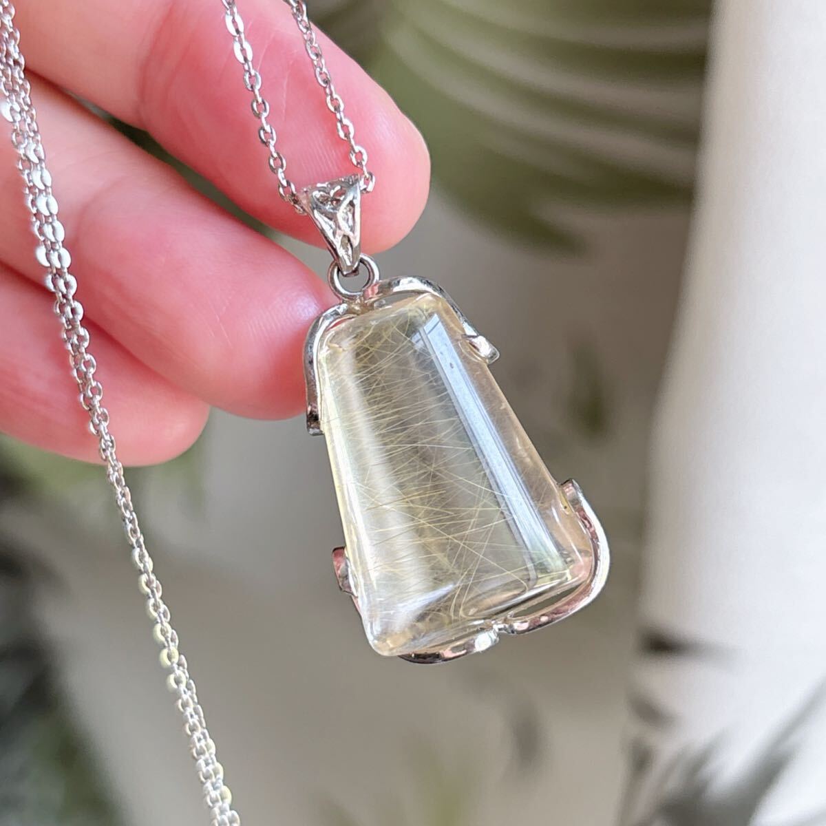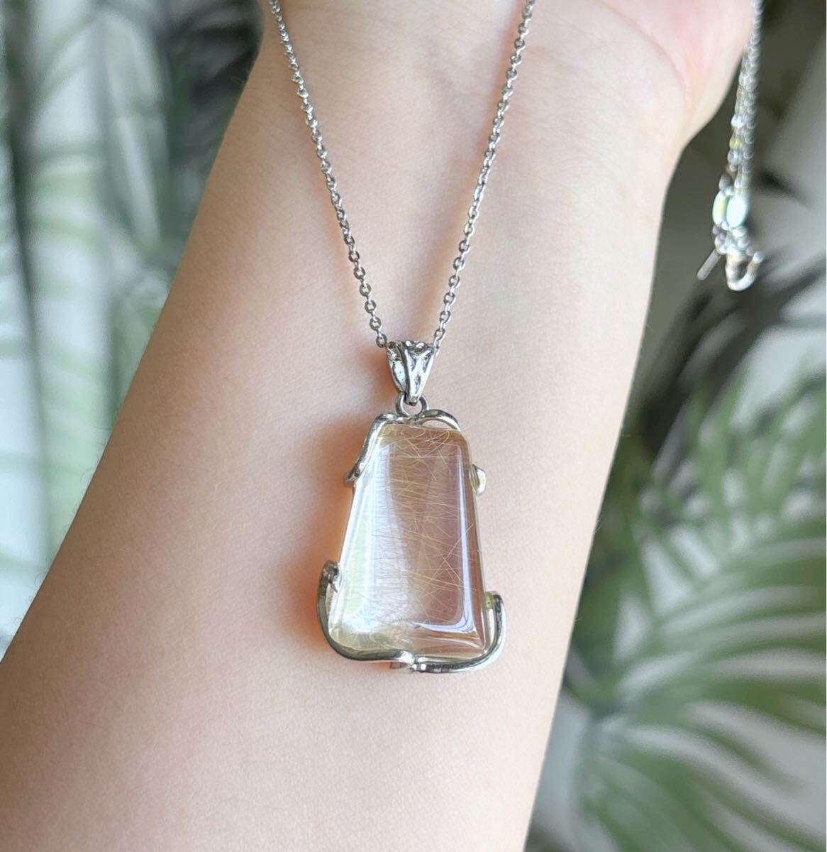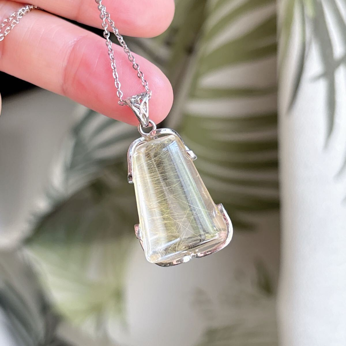 天然石 タイチンルチルクォーツのペンダントサイズ約:18.8mm*27.5mm*厚さ9mm;