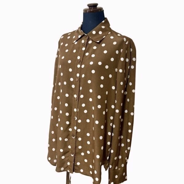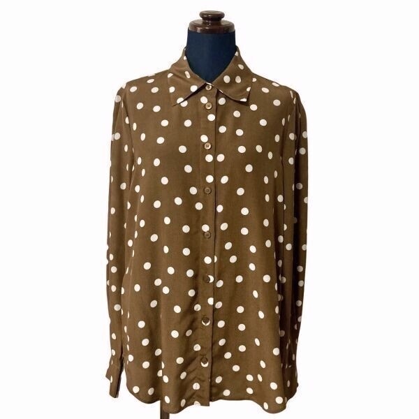 送料込み■ユニクロ×コントワーデコトニエ■シルク素材 ドット レギュラーカラーシャツ レディース サイズ7